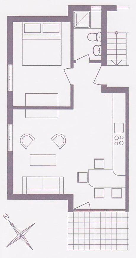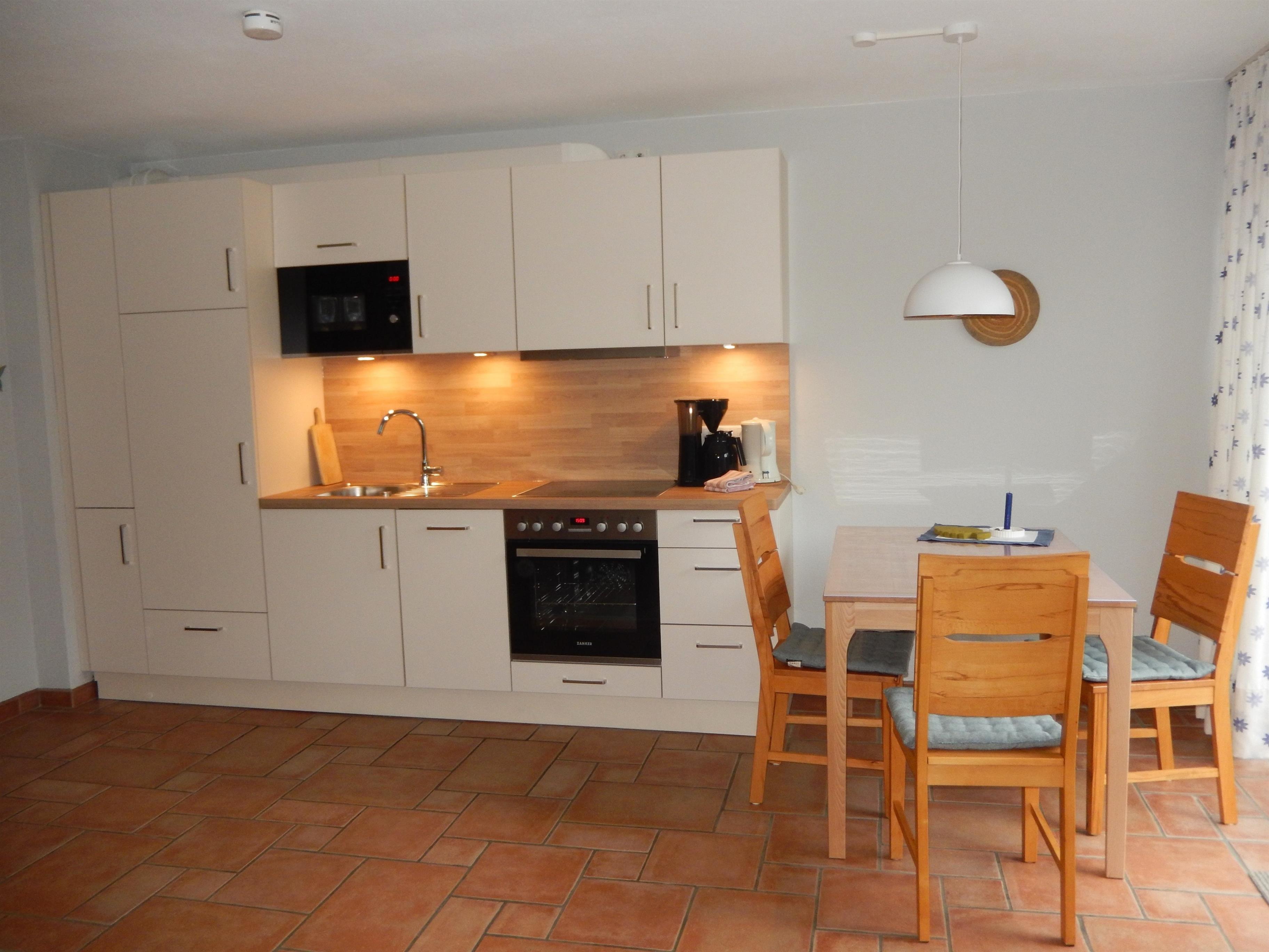 Es verfügt über 2 Zimmer sowie eine sonnige Terrasse in Südwestlage. Es ist ausgestattet mit einem 11 m² großem Schlafzimmer mit bequemen Doppelbett (180 x 200 cm). Im gemütlichen Wohnbereich befindet sich auch die offene Küchenzeile mit Ceranfeld, Backofen, Spülmaschine, Mikrowelle, Kühlschrank und einem großen Esstisch.