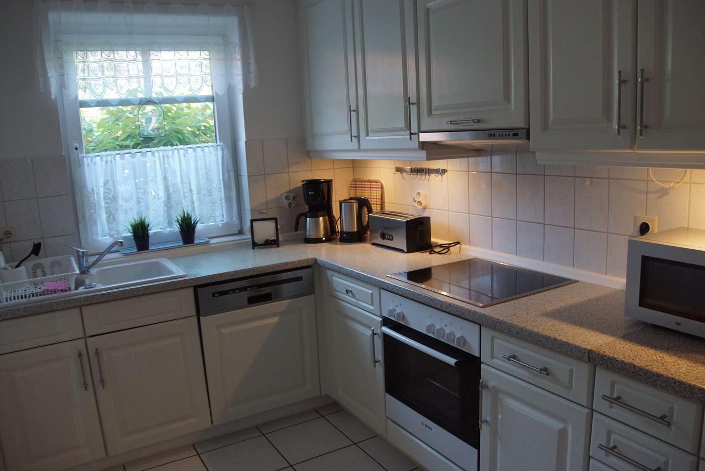 Im Inneren erwartet Sie eine gut ausgestattete Küche, die keine Wünsche offen lässt. Eine Einbauküche mit Mikrowelle, Ceran-Kochfeld, Kaffeemaschine, Kühlschrank mit Gefrierfach, Backofen, Wasserkocher, Toaster, Geschirrspüler und vielem mehr steht Ihnen zur Verfügung. Hier können Sie Ihre kulinarischen Fähigkeiten entfalten und köstliche Gerichte zubereiten.