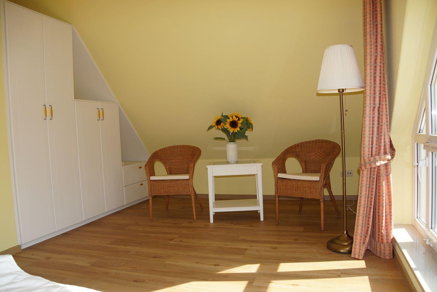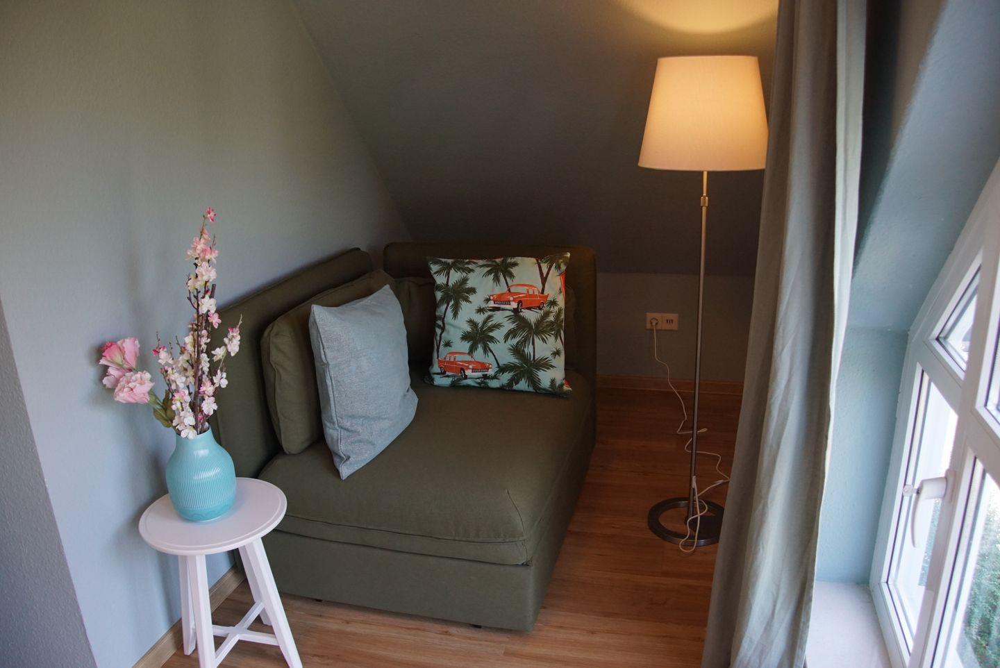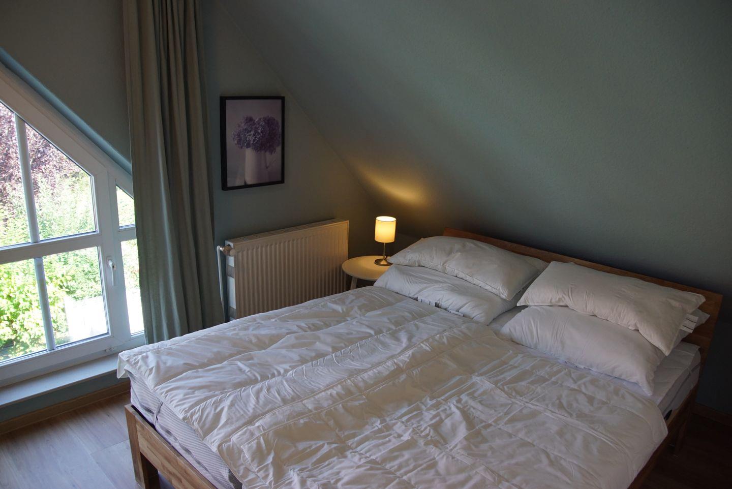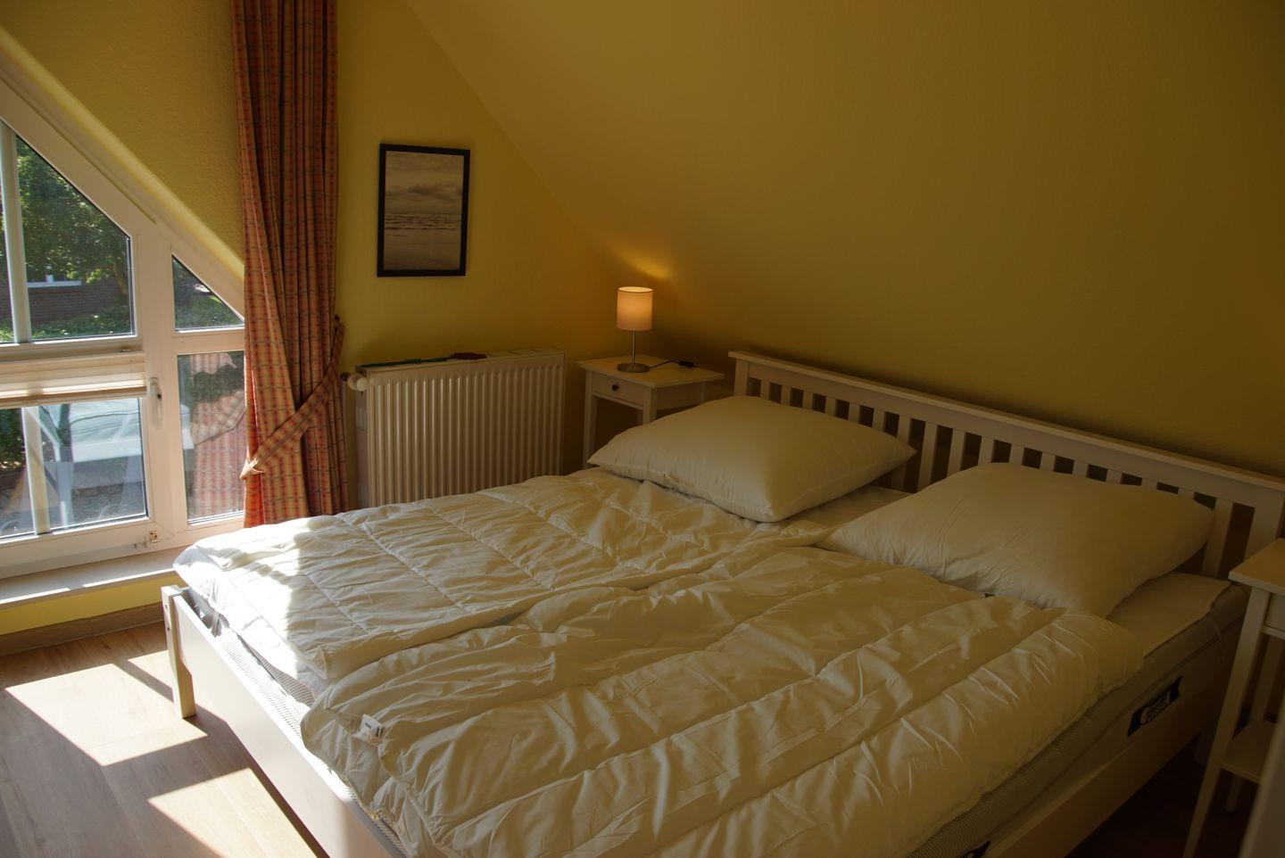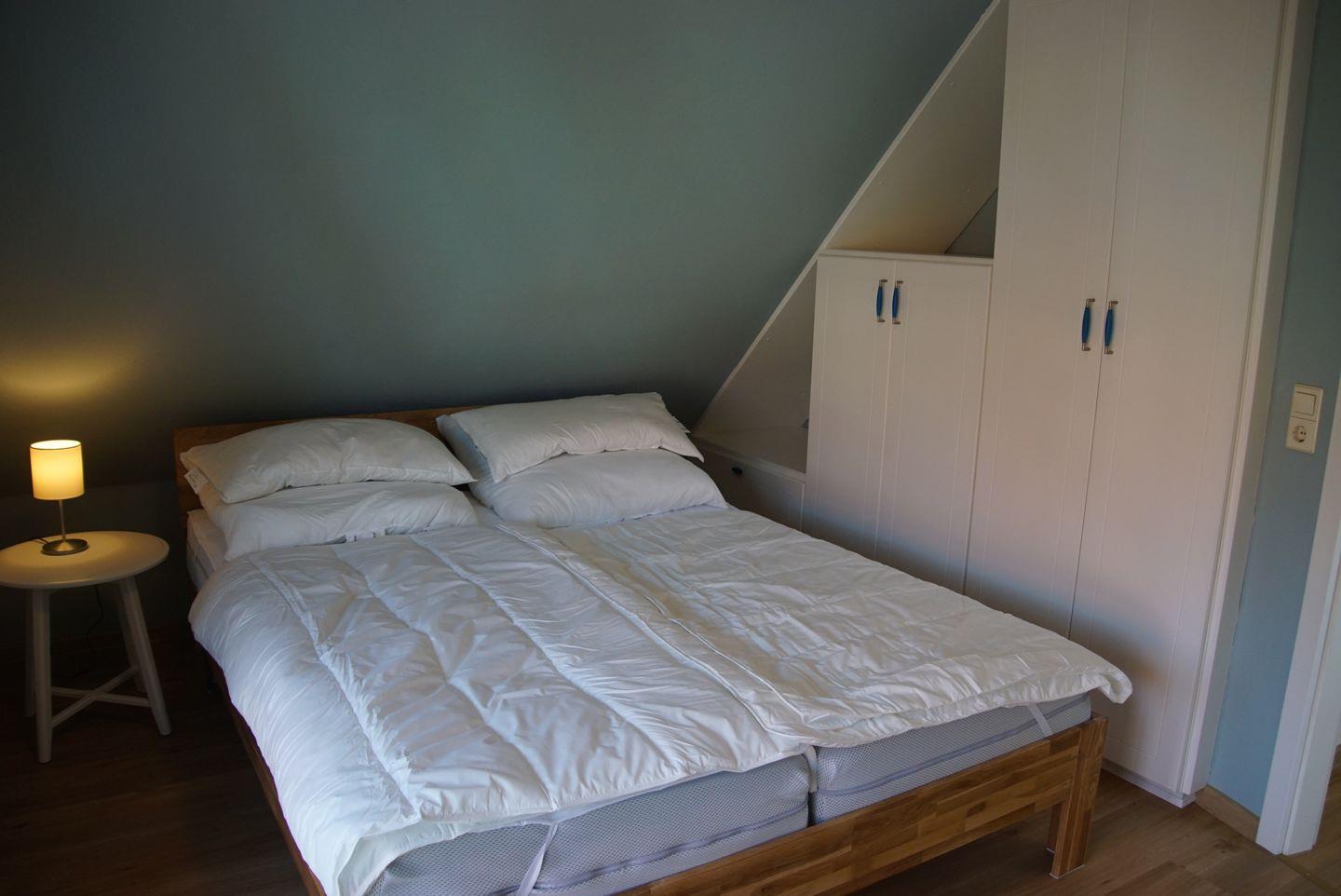 Für erholsamen Schlaf stehen Ihnen zwei Schlafzimmer zur Verfügung. Das erste Schlafzimmer im Obergeschoss verfügt über ein großes Doppelbett mit einer Größe von 1,80 x 2m und einen geräumigen Einbauschrank. Im zweiten Schlafzimmer finden Sie ein weiteres Doppelbett mit einer Größe von 1,60 x 2m (2 Matratzen) sowie ein kleines Schlafsofa für eine weitere Person. Auch hier steht Ihnen ein Einbauschrank zur Verfügung.