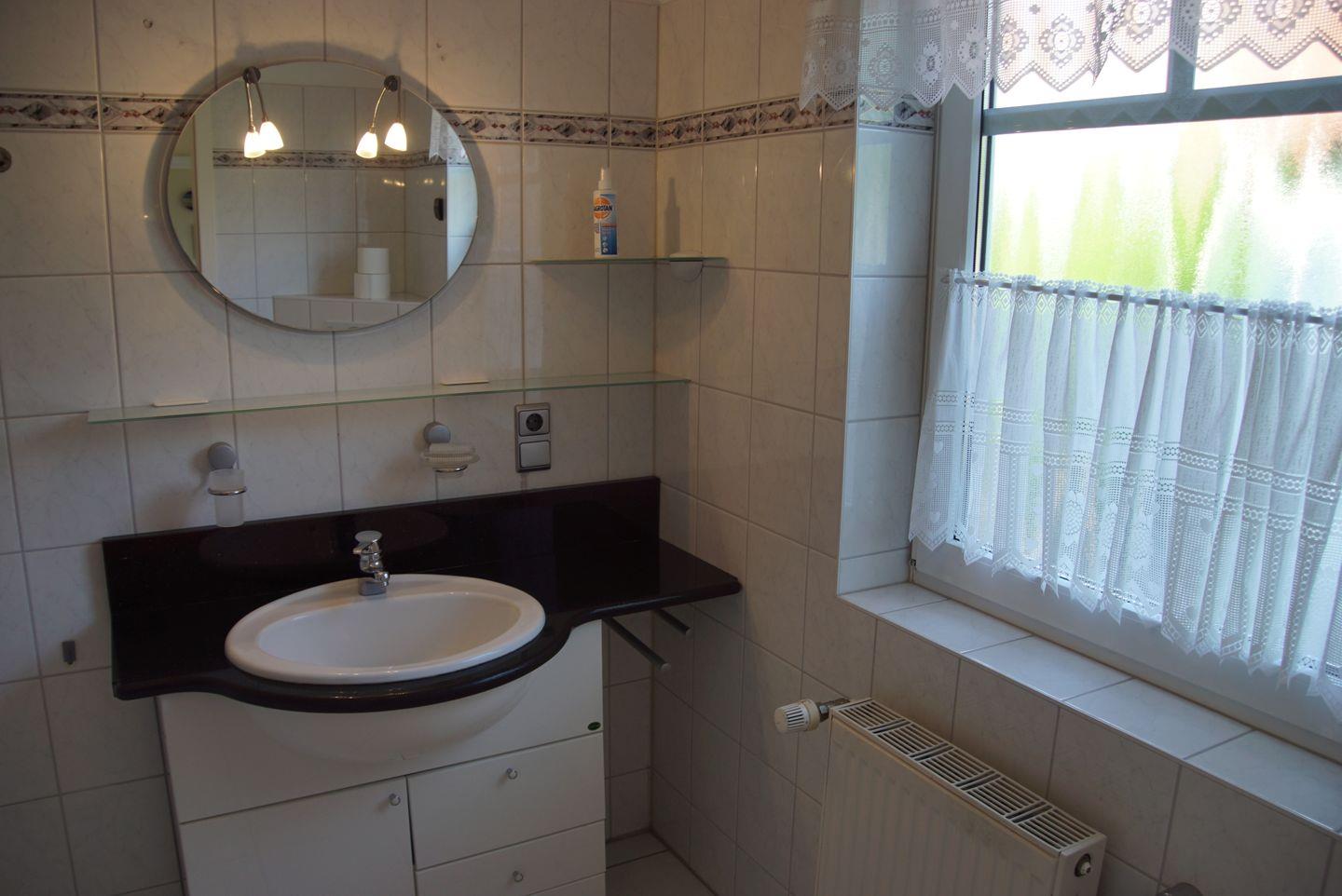 Für Ihren Komfort gibt es zwei Badezimmer im Haus. Im Erdgeschoss befindet sich ein Bad mit einer Badewanne, einem Waschbecken und einer Toilette. Im Obergeschoss finden Sie ein zweites Badezimmer mit einer Dusche, einem Waschbecken und einer Toilette. So steht einem stressfreien Start in den Tag nichts im Wege.
