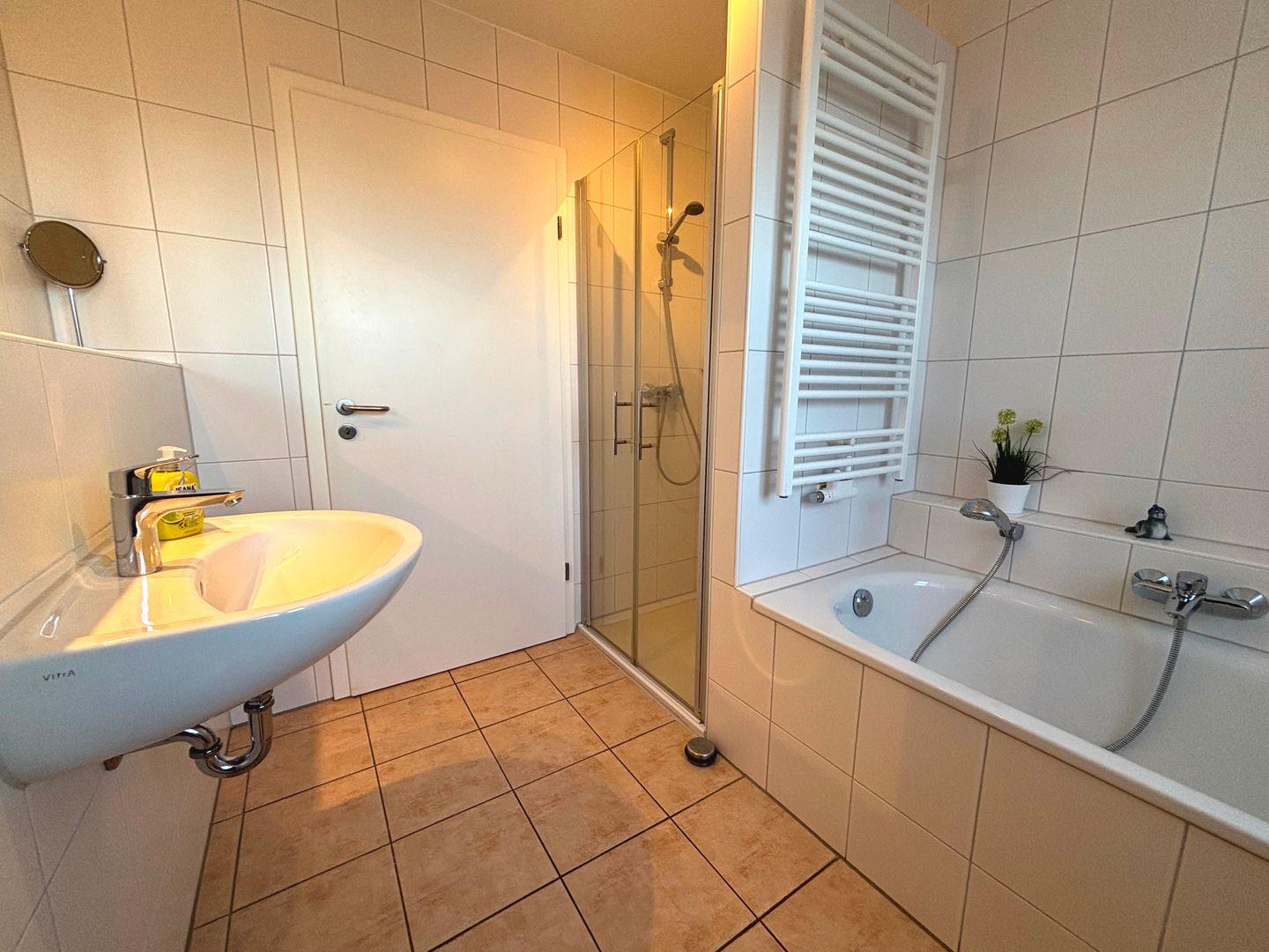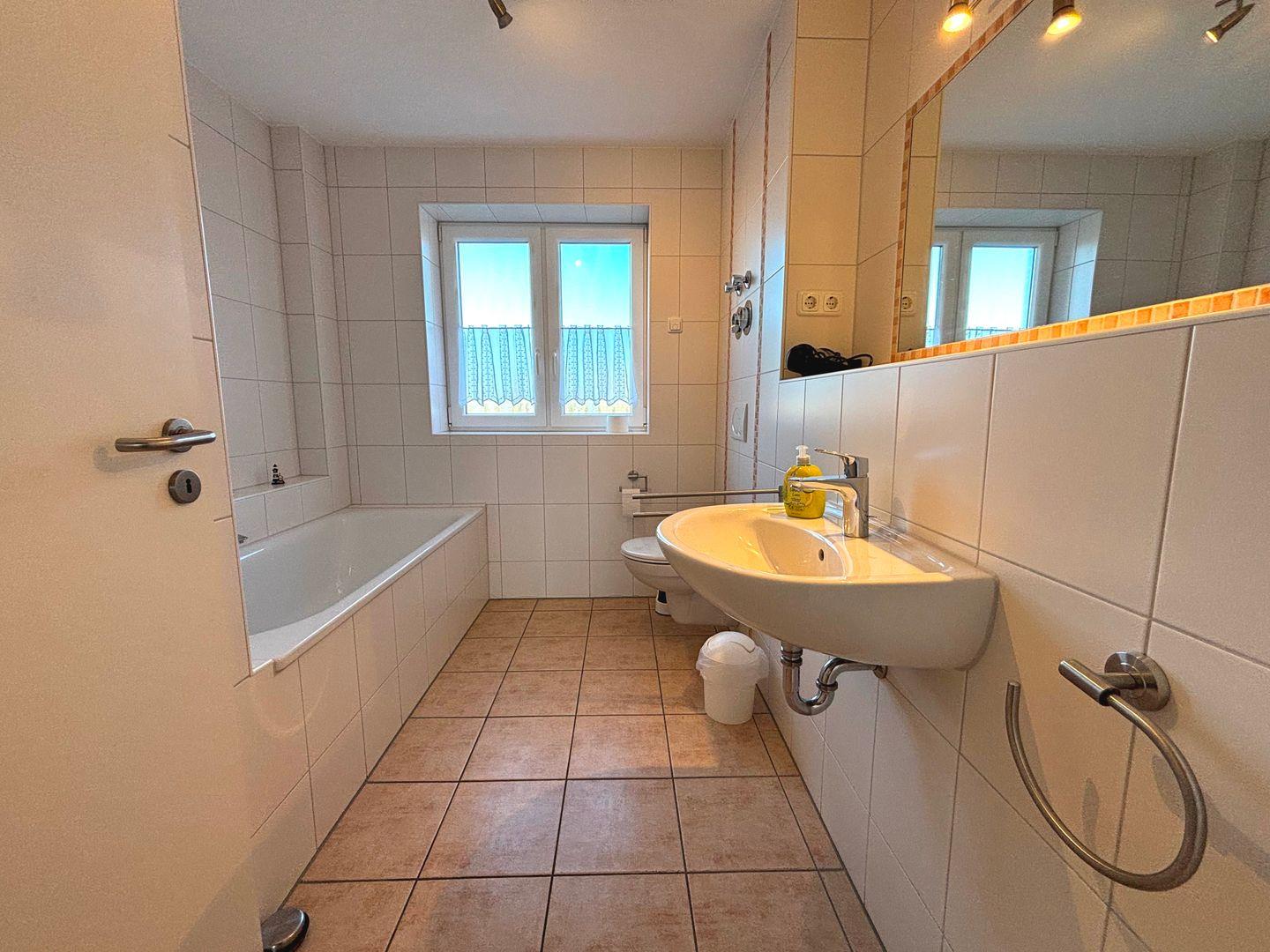 Das Badezimmer ist mit einer Badewanne ausgestattet, die zur Entspannung nach einem erlebnisreichen Tag einlädt. Für einfaches Waschen und Trocknen Ihrer Wäsche steht eine Waschmaschine zur Verfügung, und auch ein Bügeleisen sowie ein Bügelbrett sind vorhanden, damit Sie immer einen frischen Look haben.
