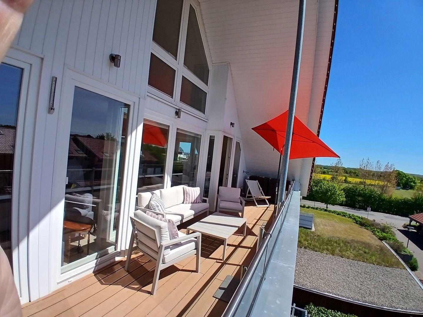 Neben dem entspannenden Aufenthalt an der Ostsee können Sie in der wohnungseigenen Sauna entspannen, die zur Eigennutzung steht, oder sich auf dem großzügigen Balkon mit Gartenmöbeln zurücklehnen und die frische Seeluft genießen.