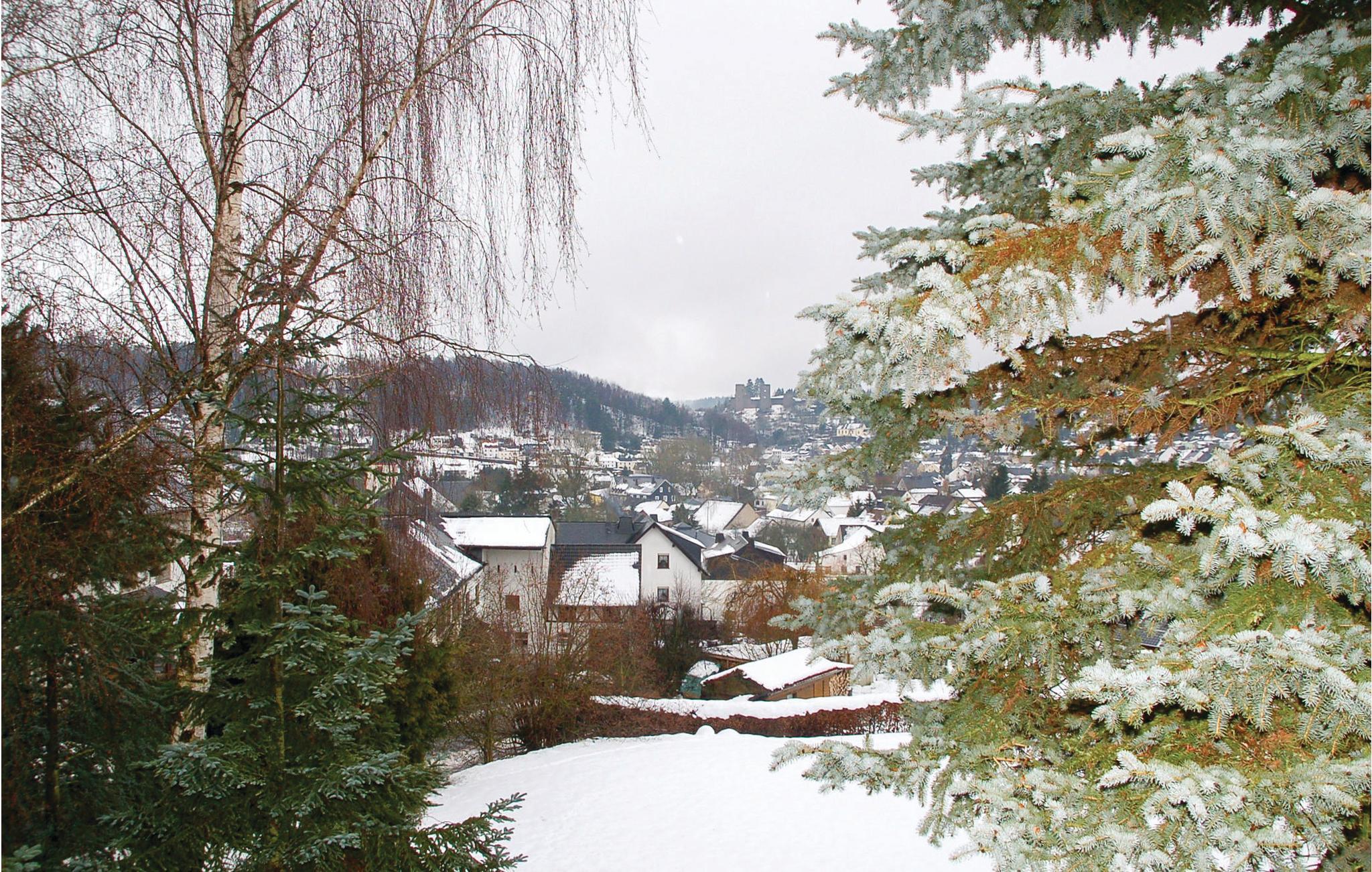 Ferielejlighedeni Schönecken ligger smukt beliggende i Schönecker Schweitz tæt på Prüm. Der er gode indkøbsmuligheder i Schönecken og området har et hav af stier hvor I kan tage på lange vandre- og cykelture eller I kan benytte badefaciliteterne. Blandt seværdighederne er en borgruin, et kapel og et håndværksmuseum. Borgen kan I besøge fra en vandresti og trapper fra kirken og i klart vejr er udsigten derfra fuldstændig betagende.