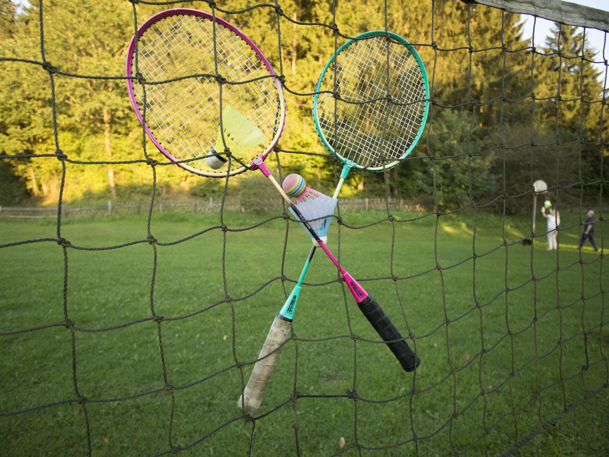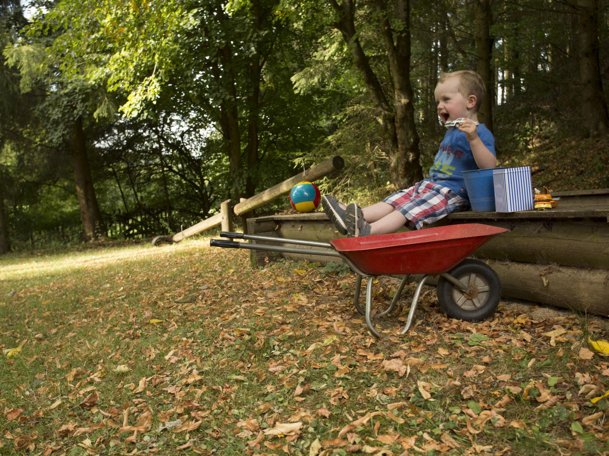 Small, rustic holiday village "Reinskopf", surrounded by trees and meadows. On the outskirts, 900 m from the centre of Schönecken, in a quiet position on top of a hill, 20 m from the edge of the forest, 25 km from the lake, 20 m from the stream. For shared use: park 1 ha, lawn for sunbathing 400 m2, pond. Table tennis, volleyball, patio (30 m2), barbecue, children's playground (slide, swing, sandbox). In the complex: reception, central heating system, washing machine (extra), tumble dryer (for shared use, extra). Parking at the house. Central parking spaces. Grocery 1 km, supermarket 1 km, shopping centre 10 km, restaurant 750 m, bar 10 km, bakery 1.2 km, café 1.2 km, bicycle rental 10 km, bus stop "Schönecken" 1.5 km, outdoor swimming pool 11 km, indoor swimming pool 11 km, bathing lake 20 km. Golf course (18 hole) 14 km, tennis 10 km, riding stable 10 km, walking paths from the house 20 m, cycle lane 5 km, slopes 12 km. Nearby attractions: Burgruine Clara Costa, Schönecker Schweiz, Altburgtal. Well-known lakes can easily be reached: Vulkanmaare 25 km. Please note: car recommended. The photograph shows a typical example. The photo is just an example. All houses/apartments are individually designed/furnished. The holiday village consists of eight holiday homes, each with two apartments. There is also a playhouse for small children that can be shared (free of charge).