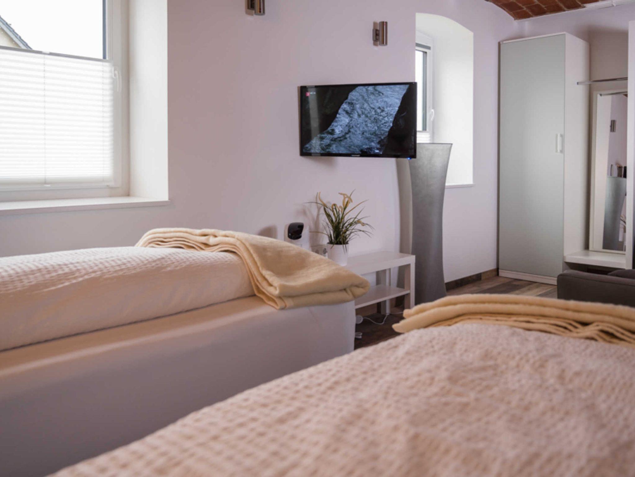 Pro Zimmer stehen zwei Kirschkernkissen als Entspannungshilfe zur Verfügung.