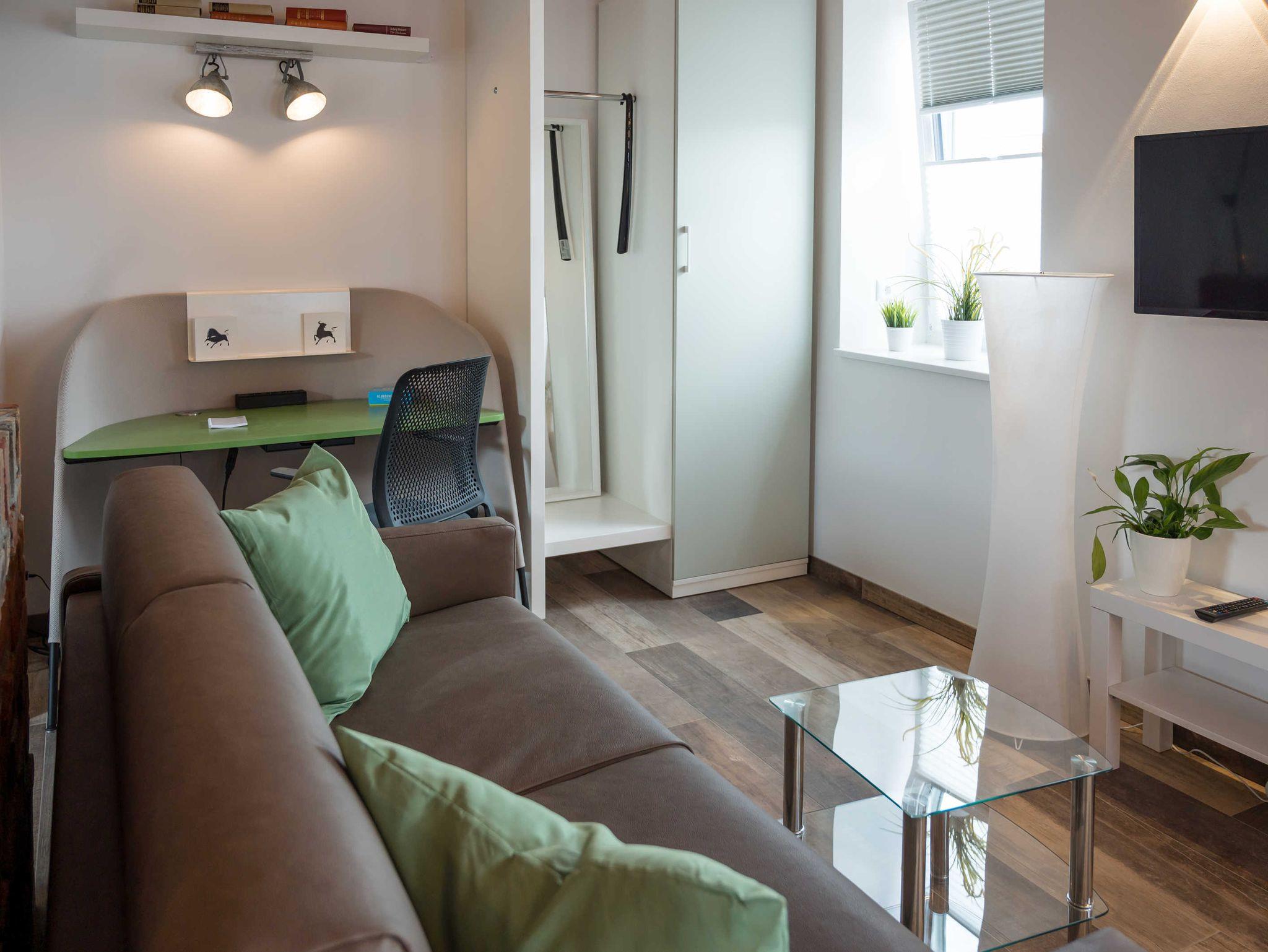 Arbeiten - mobiler kleiner Schreibtisch inkl. ergonomischen Stuhl und wireless charger ermöglichen schnelles Arbeiten via W-Lan. Auch muss darüber telefoniert werden, da das Funknetz leider in den Räumen kaum vorhanden ist.