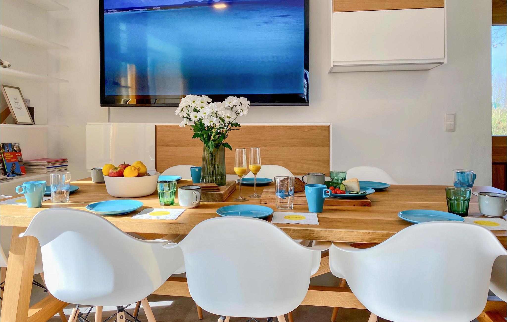 I bor ud til et dejligt engområde og kun fem minutters kørsel eller en kort cykeltur fra Østersøen. Det er nemt at parkere ved stranden. Dörphof ligger lige ud til Østersøen, hvor der er en fin sandstrand og et tilstødende naturreservat. Glæd jer til det store netværk af cykel- og vandrestier, hvor I kan tage på fantastiske ture. På den modsatte side af Østersøen løber Slien, som er Tysklands eneste naturlige fjord, som I også kan opleve fra cykelsadlen eller i båd. Kappeln er en nærliggende by med en dejlig havn, god gastronomi og detailhandel, så her kan I også lægge vejen forbi.