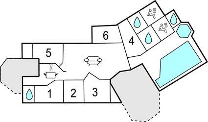 - Nogle billeder er eksempler. Gulvbelægningen, farven på huset og indretningen kan variere. I alle husene er whirlpool og sauna ens.