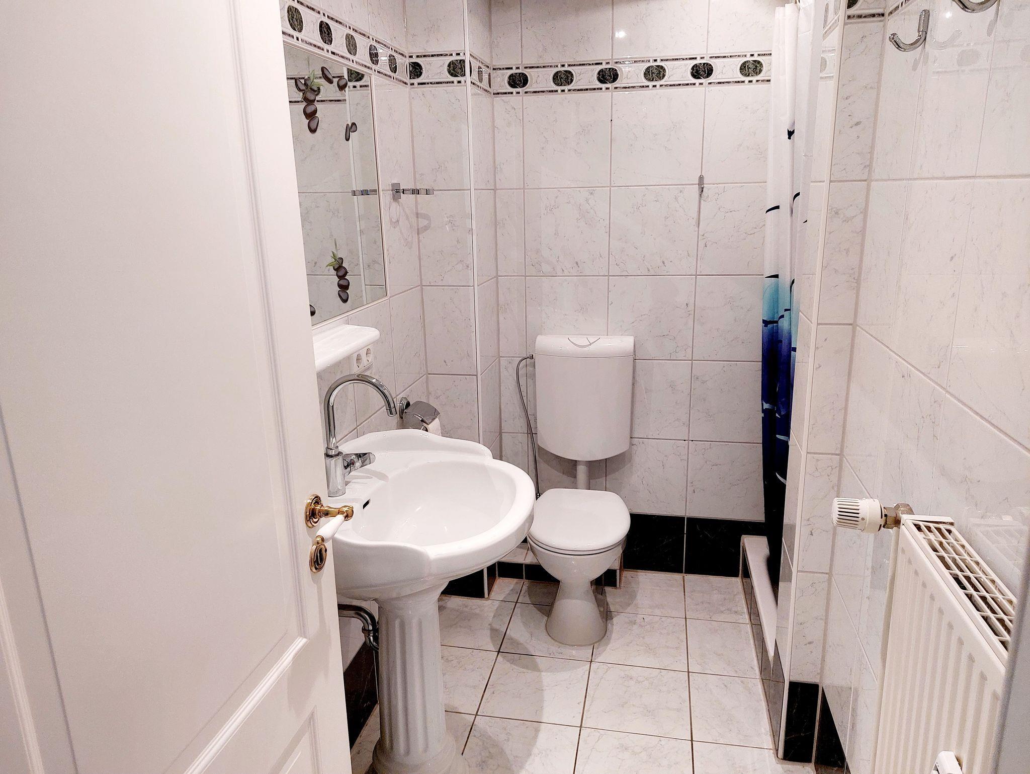 Das gepflegte Bad ist mit einer Dusche und WC ausgestattet. Ein kostenloser WLAN-Anschluss steht Ihnen für die stressfreie Nutzung des Internets zur Verfügung. Ein eigener Parkplatz sowie ein Fahrradbügel zur Sicherung Ihrer Fahrräder runden das Angebot ab. Nach Absprache kann auch ein abschließbarer Fahrradschuppen genutzt werden. Dieser befindet sich in einer benachbarten Straße etwa 300m von der Ferienwohnung entfernt.