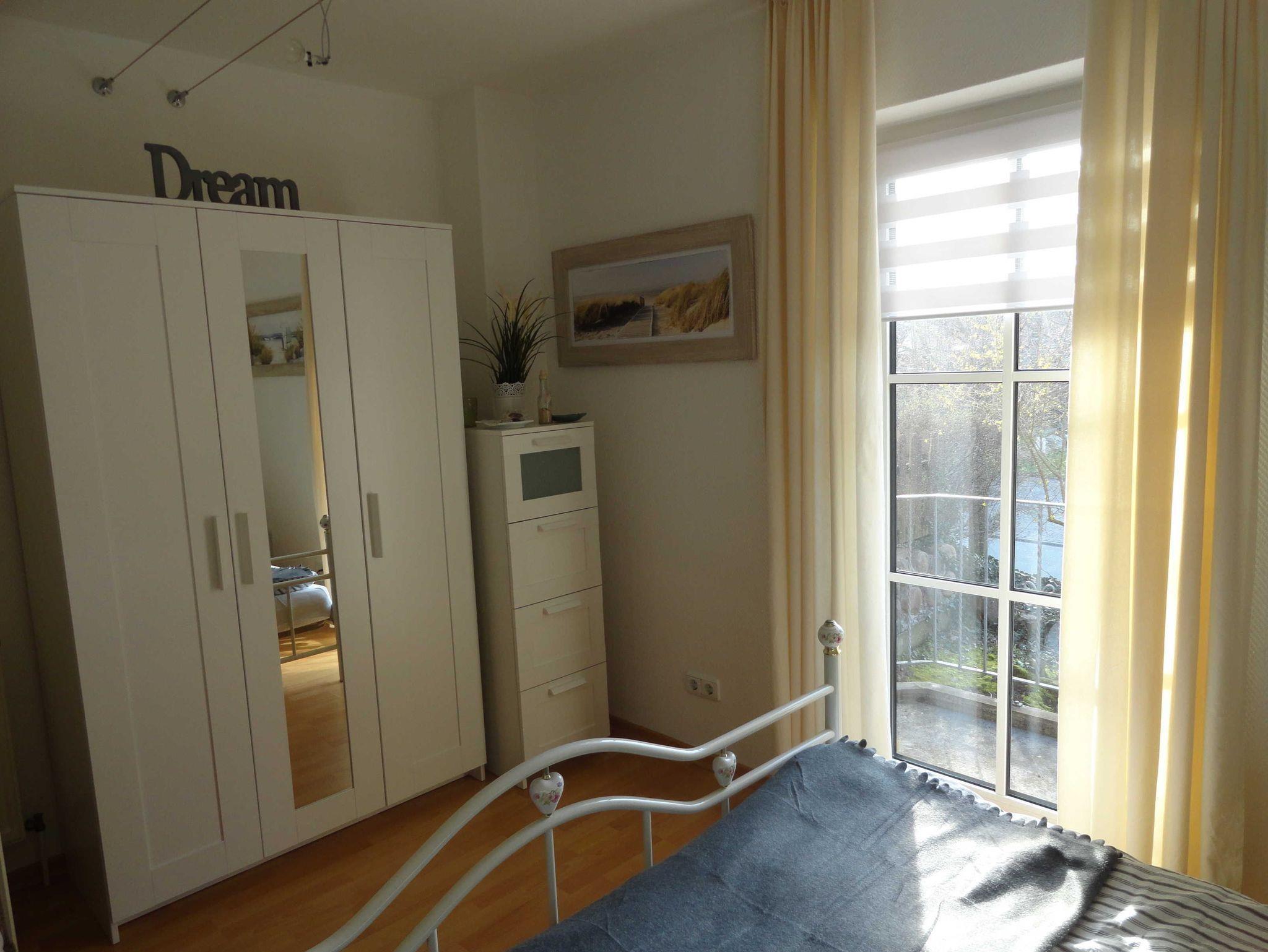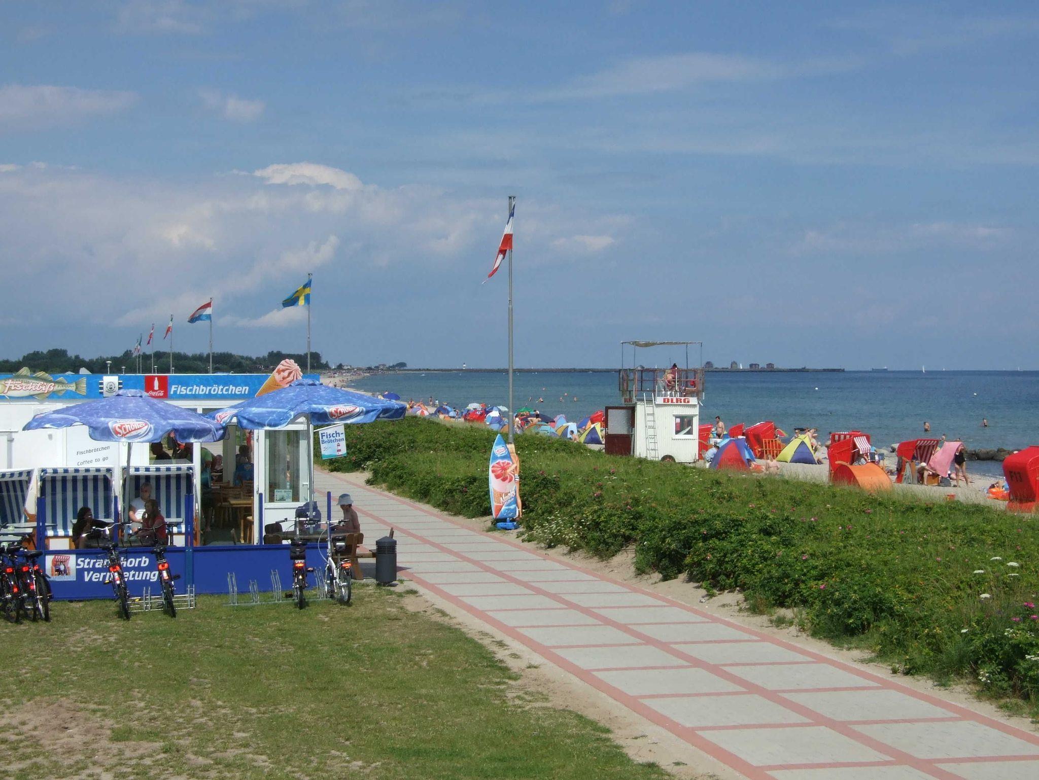 Die schöne 2-Zimmer-Ferienwohnung Strandglück bietet auf 46qm Wohnfläche genügend Platz für 2-3 Personen. Die Wohnung liegt in einer kleinen Mehrappartementanlage, nur ca. 950 m vom Strand entfernt und ganz in der Nähe der Reha-Klinik Schloss Schönhagen, d.h. die Ferienwohnung ist auch ideal für Begleiter der Reha-Patienten. Im gemütlichen Wohnzimmer befinden sich eine große Couch, die als Schlafplatz für eine Person genutzt werden kann, ein 43 Zoll Smart-TV, sowie der Essplatz. Hier ist auch der Ausgang zur süd-ostseitig gelegenen, möblierten Terrasse. Das Schlafzimmer bietet ein Doppelbett, einen Kleiderschrank sowie den Ausgang zum West-Balkon. Die kleine Küchenzeile mit 4-Kochzonen-Ceranfeld, Minibackofen, Geschirrspüler und Kühlschrank mit Gefriermöglichkeit befindet sich im Flurbereich, außerdem gibt es ein Bad mit Wanne (Duschmöglichkeit gegeben) und WC. In der Wohnung gibt es einen kostenfreien WLAN-Anschluss. Ein reservierter PKW-Stellplatz steht den Gästen ebenso zur Verfügung wie ein abschließbarer Fahrradschuppen.