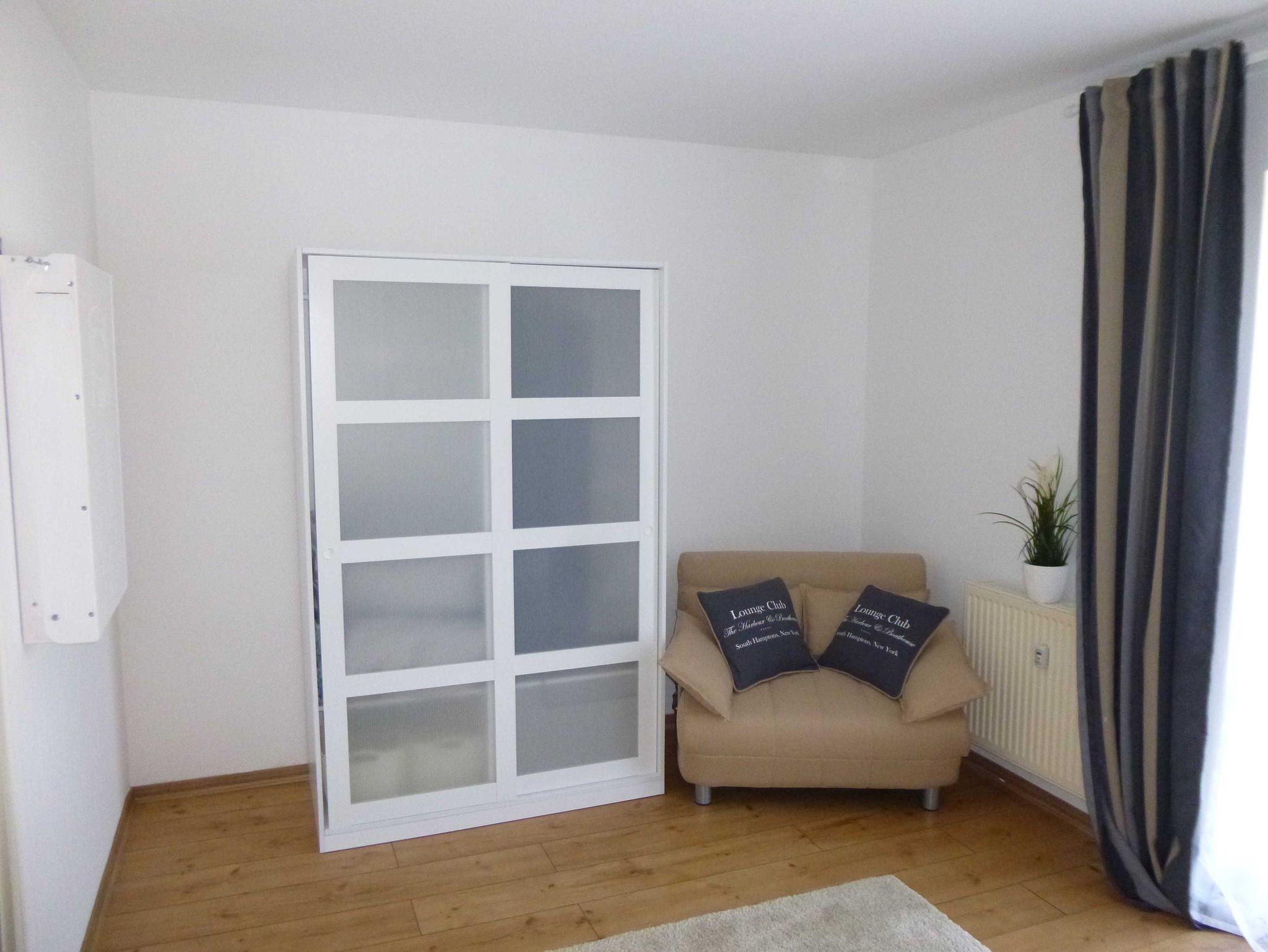 Die Ferienwohnung Lüttje Stuv liegt im Parterre einer kleinen Mehrappartementanlage im Ostseebad Schönhagen. Die 45qm Wohnfläche verteilen sich auf ein Wohn- Esszimmer mit einer kleinen Küchenzeile, ein Schlafzimmer mit einem Doppelbett und einem Schlafsessel und ein Bad mit ebenerdiger Dusche. Außerdem gibt es kostenfreies WLAN in der Wohnung, eine möblierte Westterrasse mit Sichtschutzzaun und einen reservierten PKW-Stellplatz vor dem Haus.