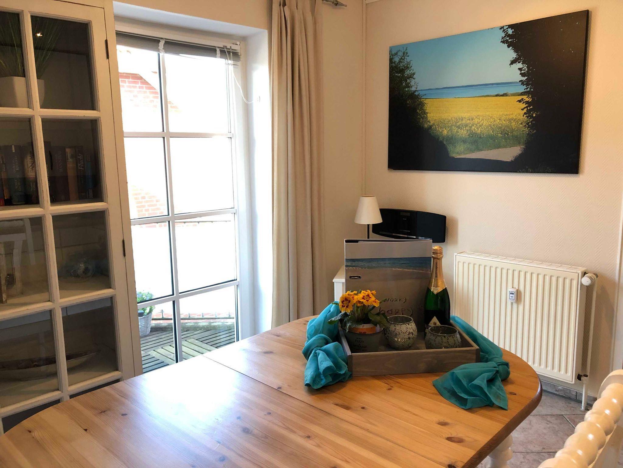 Die Ferienwohnung kum rin liegt in der 1. Etage eines Mehrappartementhauses und verfügt über 40m² Wohnfläche für max. 3 Personen, aufgeteilt in: Wohnzimmer mit gemütlicher Schlafcouch und Essbereich, Schlafzimmer mit Doppelbett (180x200 cm, einteilige Matratze), Küchenzeile im Wohnbereich, Duschbad/WC, Balkon zur Westseite mit Markise, WLAN, reservierter PKW-Stellplatz, reservierter, fester Fahrradbügel.