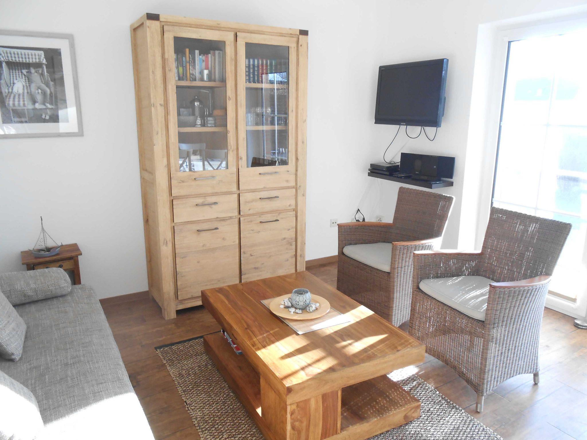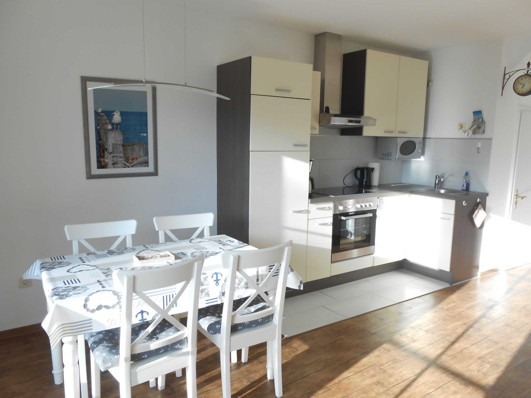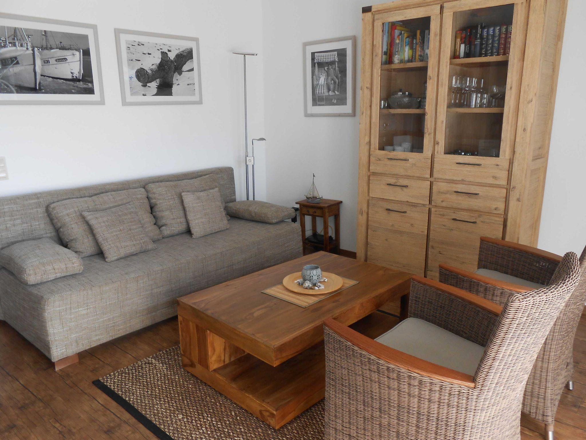 Die 2-Zimmer-Ferienwohnung Piratin liegt im Parterre eines Mehrappartementhauses und hat ca. 50 m² Wohnfläche, aufgeteilt in: Wohnzimmer mit Essecke und Couch, SAT-TV, DVD/Blue-Ray Player, Schlafzimmer mit Doppelbett (2 x 80x200 cm), Küchenzeile (im Wohnzimmer) mit Mikrowelle und Geschirrspüler, Dusche/WC, Waschmaschine. Außerdem kostenfreies W-LAN (nur mit Zustimmung der Nutzungsbestimmung), Spiele und Bücher, möblierte Terrasse, reservierter PKW-Stellplatz.