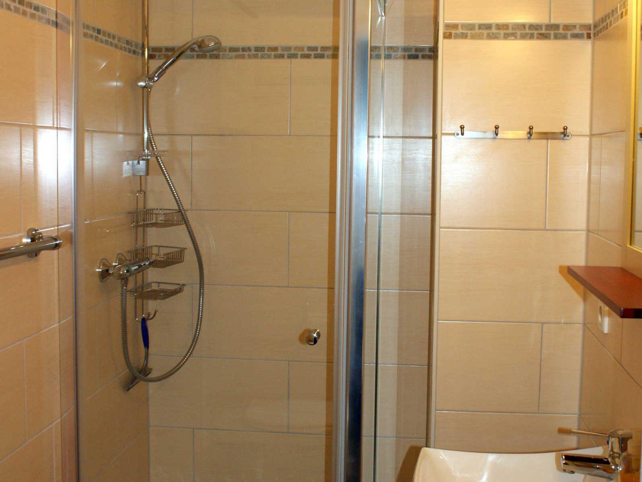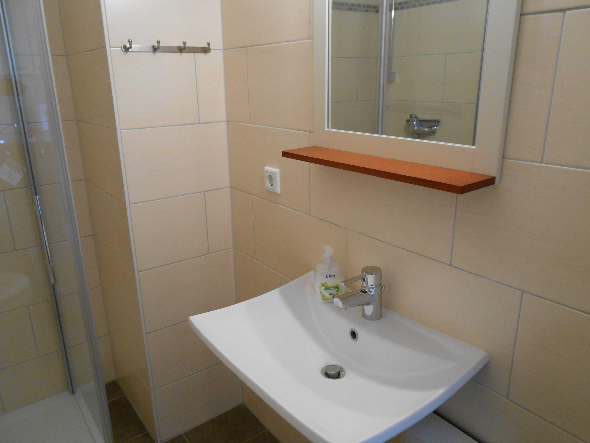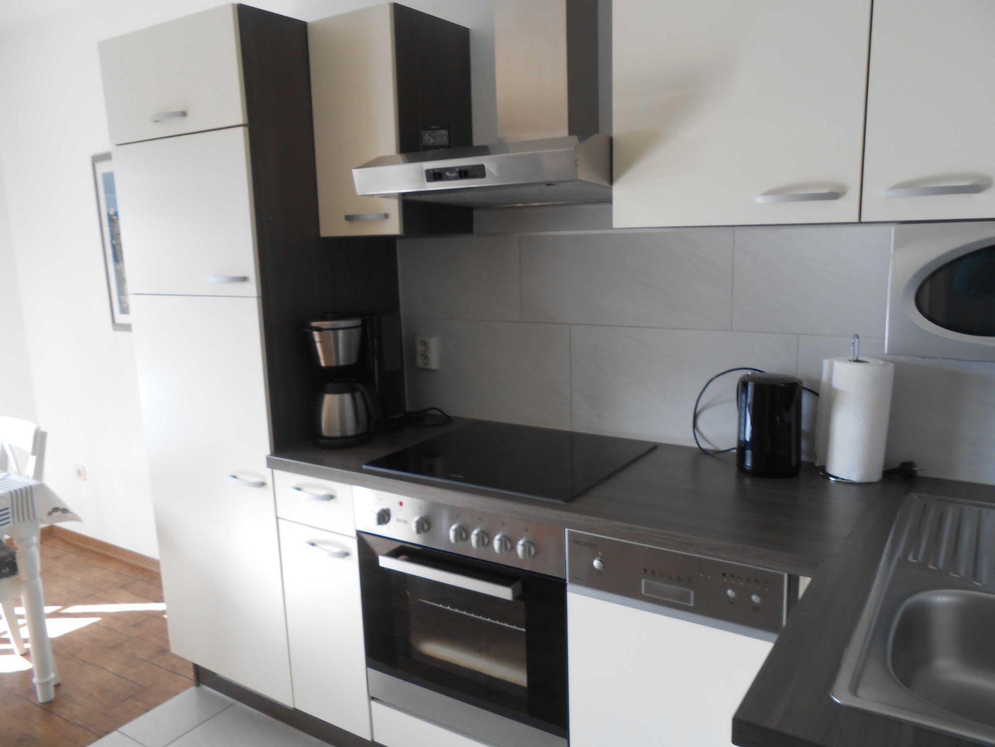 Die 2-Zimmer-Ferienwohnung Piratin liegt im Parterre eines Mehrappartementhauses und hat ca. 50 m² Wohnfläche, aufgeteilt in: Wohnzimmer mit Essecke und Couch, SAT-TV, DVD/Blue-Ray Player, Schlafzimmer mit Doppelbett (2 x 80x200 cm), Küchenzeile (im Wohnzimmer) mit Mikrowelle und Geschirrspüler, Dusche/WC, Waschmaschine. Außerdem kostenfreies W-LAN (nur mit Zustimmung der Nutzungsbestimmung), Spiele und Bücher, möblierte Terrasse, reservierter PKW-Stellplatz.