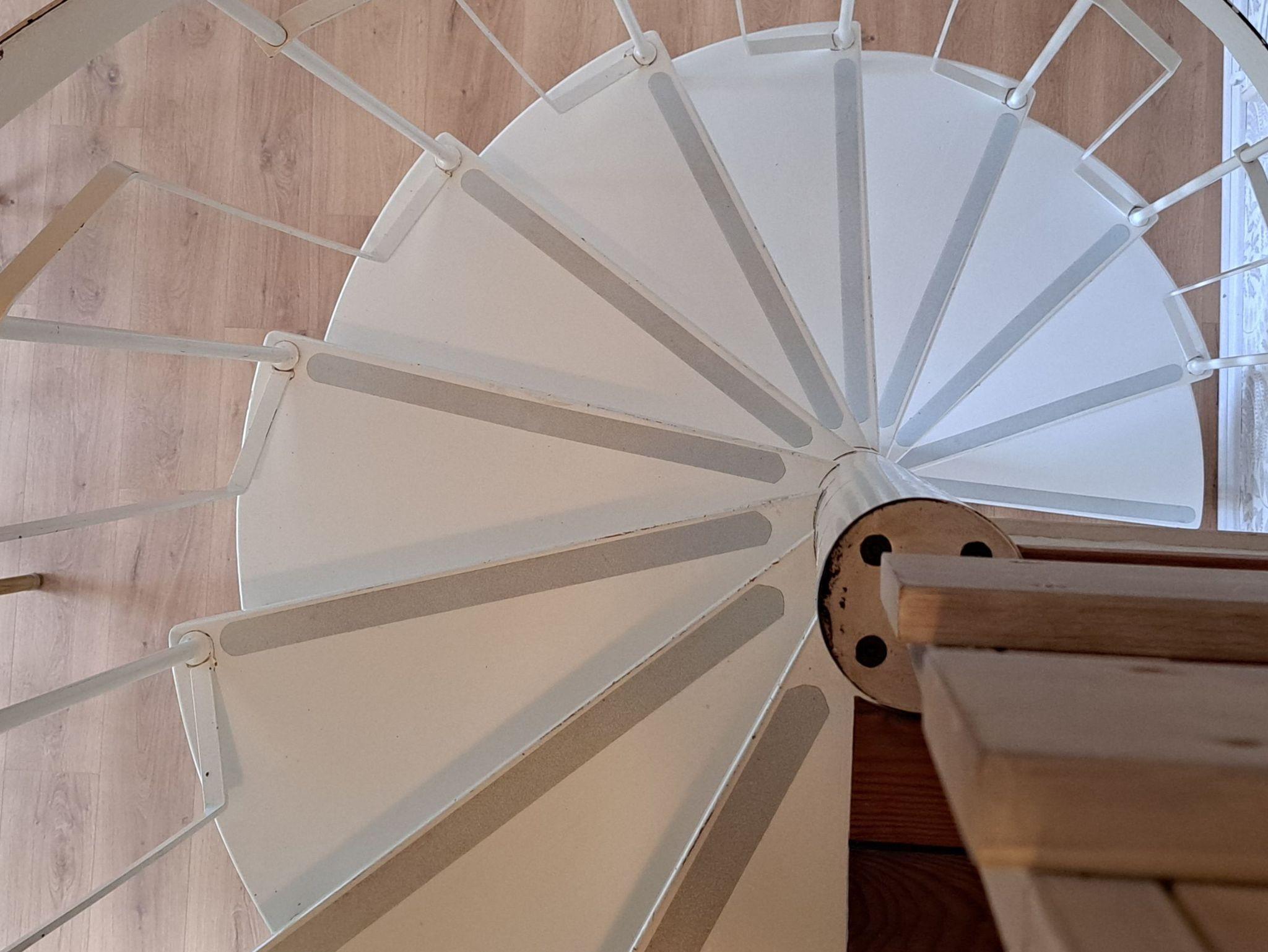 • schmale, steile Wendeltreppe zum Schlafbereich