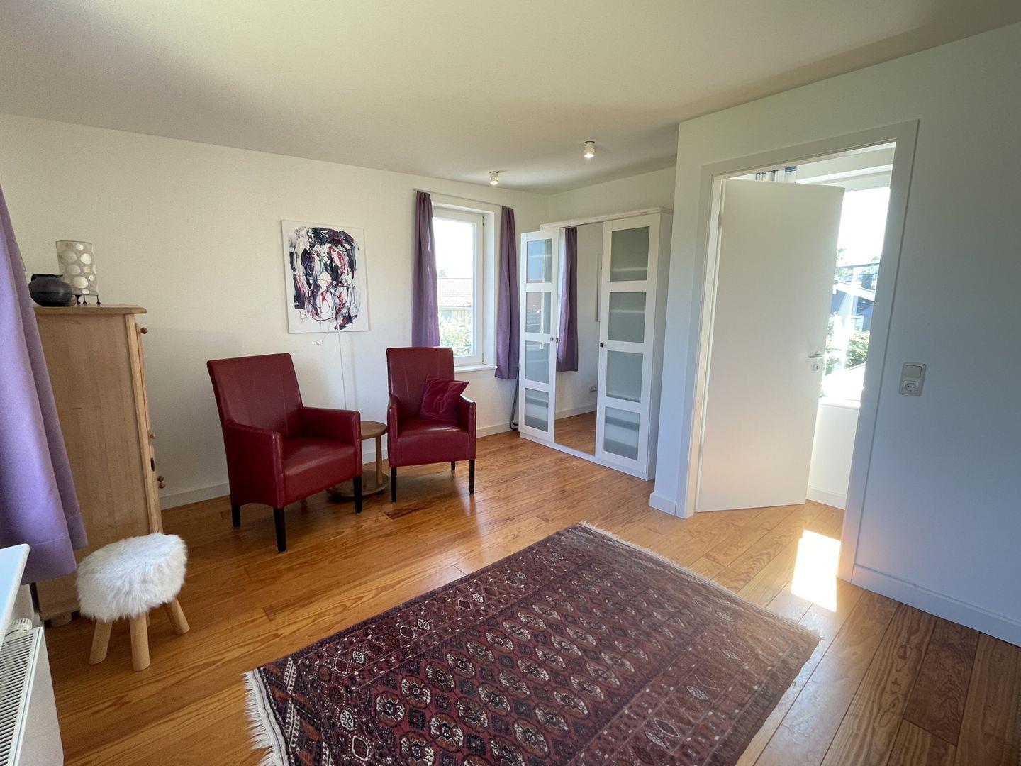 Das sehr helle und geschmackvoll eingerichtete Ferienhaus Lo-La verfügt im Erdgeschoss über 2 Schlafräume mit einem Doppelbett 180x200 cm und 160x200 cm, sowie ein weiteres Schlafzimmer (180x200 cm) im Obergeschoss, in dem auch das Kinder-Reisebett Platz findet. Ein Kinderhochstuhl ist ebenfalls vorhanden.
