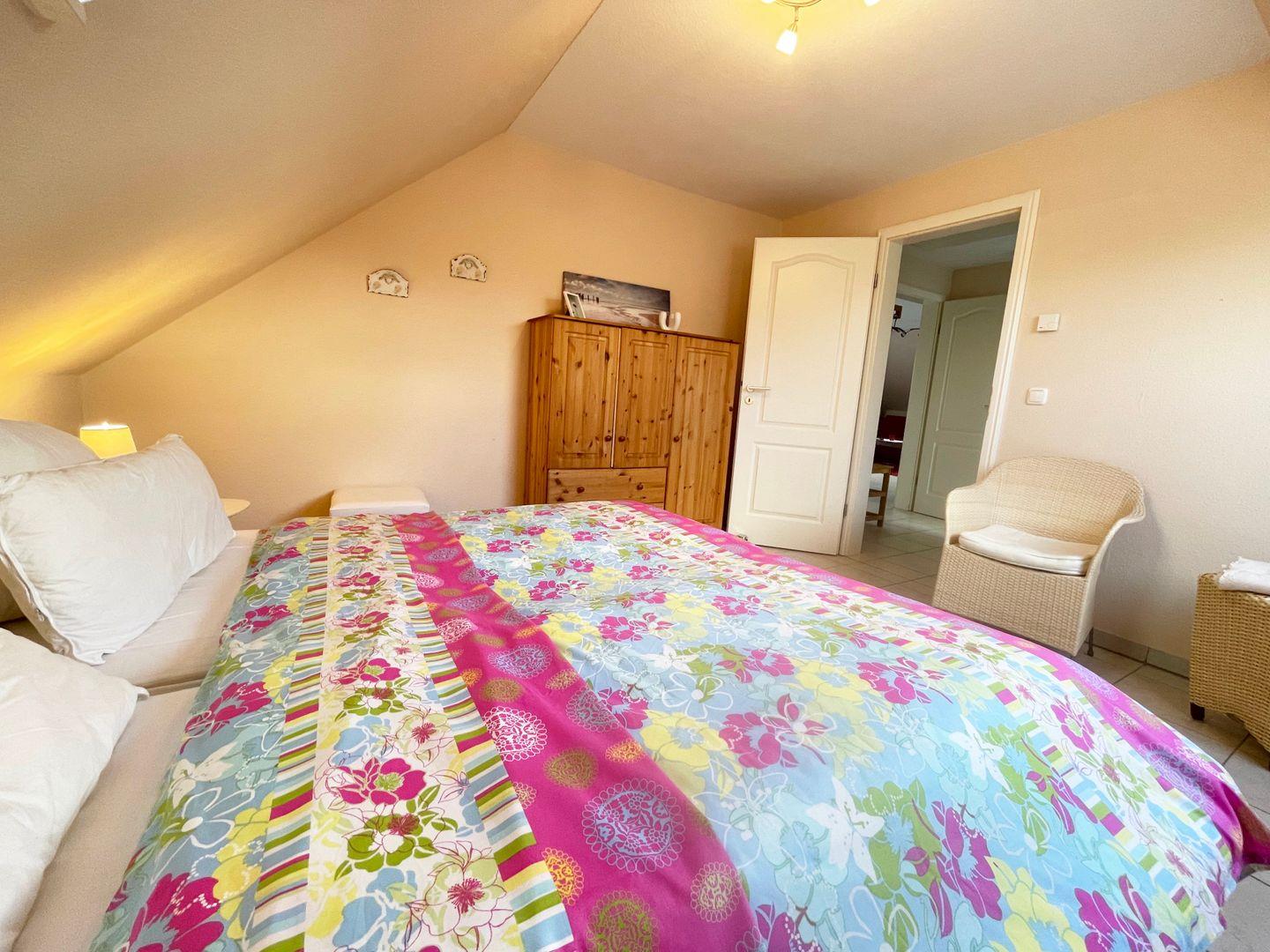 Zwei Schlafzimmer mit Doppelbetten, sowie ein Wannenbad sind vom Flur aus erreichbar.