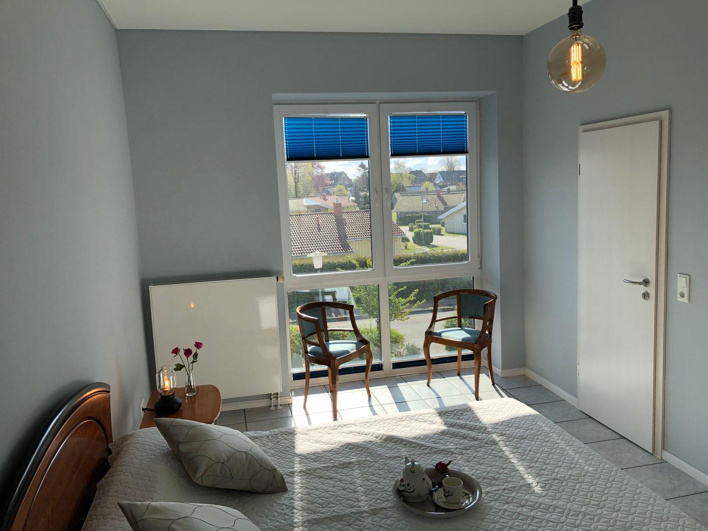 Moderne Ferienwohnung mit einem Balkon und Blick über Schönhagen.
