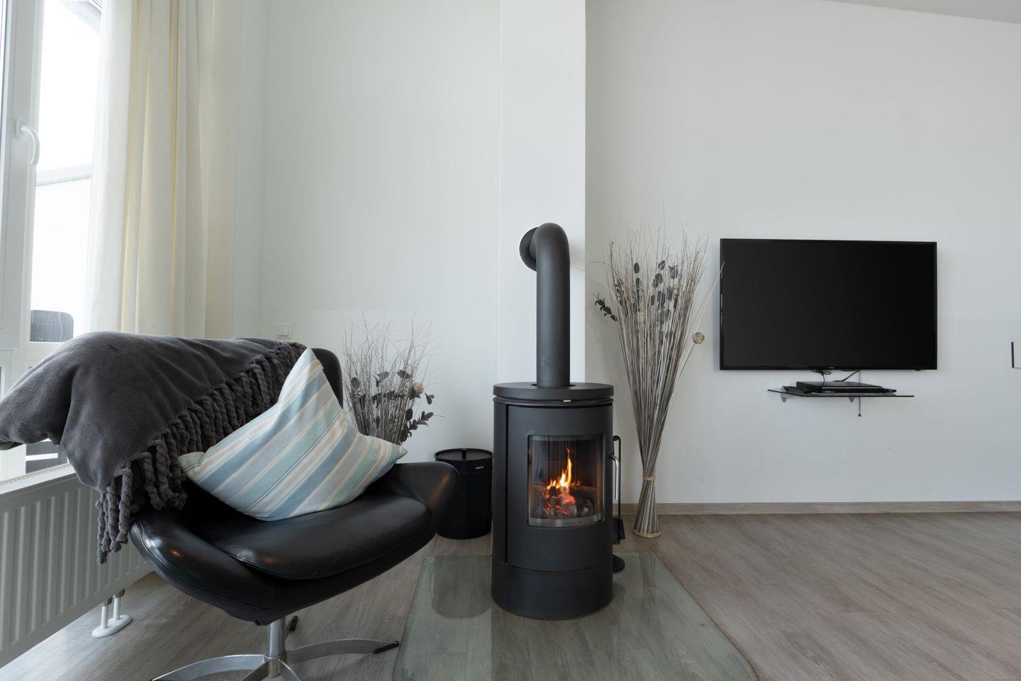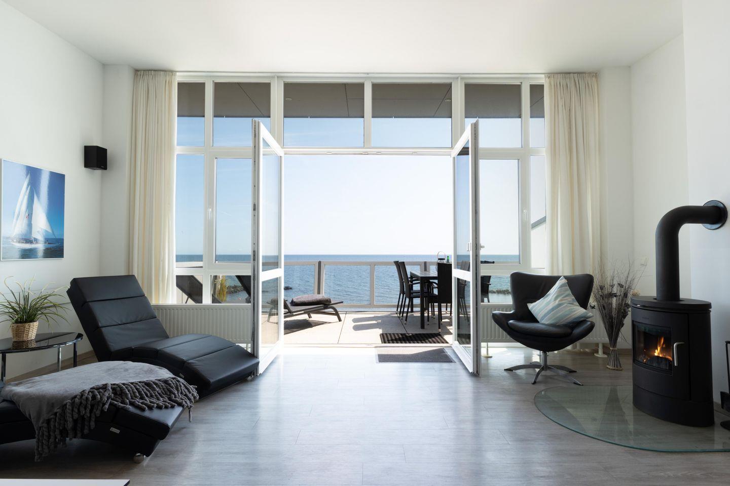 Ein besonderes Highlight ist die private Wellnessoase mit einem Whirlpool für zwei Personen sowie einer Sauna. In den Wintermonaten sorgt der skandinavische Kaminofen für wohlige Wärme und eine gemütliche Atmosphäre – ideal, um bei knisterndem Feuer die beeindruckende Aussicht auf die stürmische Ostsee zu genießen.