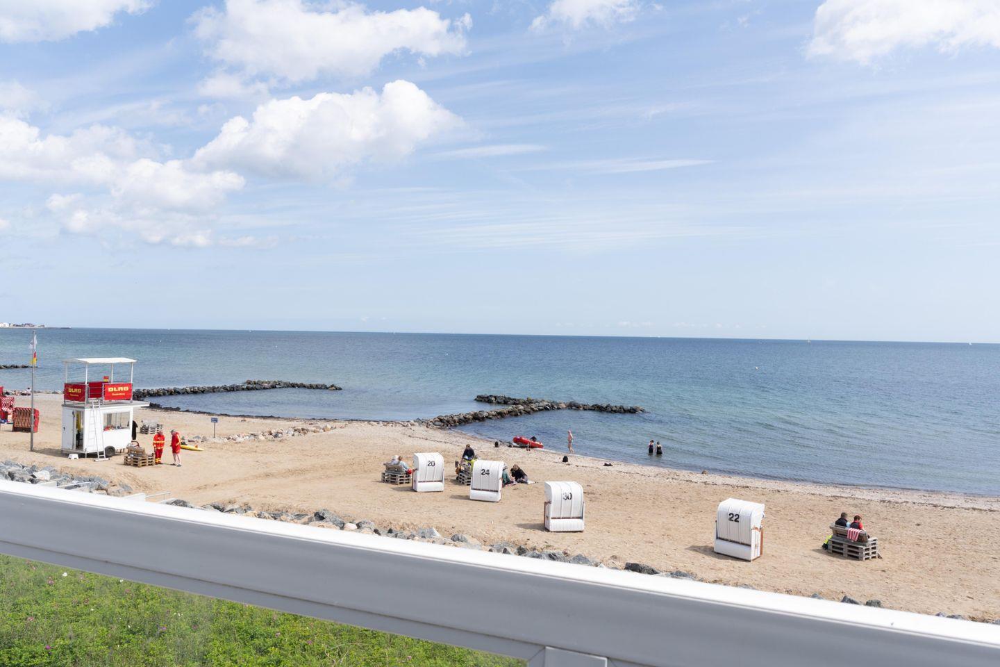 Der feinsandige Strand von Schönhagen beginnt direkt vor der Haustür, nur durch die charmante Promenade getrennt. Im Erdgeschoss des Gebäudes befindet sich ein Café mit reichhaltigem Angebot– hier sind Sie mitten im Geschehen.