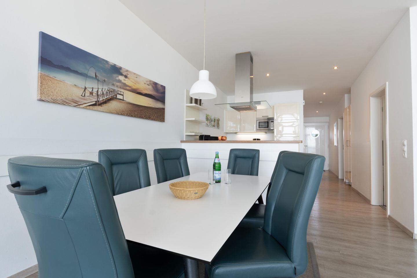 Die Ferienwohnung 1. Linie Ostseeblick in Schönhagen bietet Ihnen auf 110 m² Platz für bis zu vier Personen. Genießen Sie den direkten Blick auf das Meer von Ihrem Balkon aus und entspannen Sie in der modernen, lichtdurchfluteten Wohnung mit zwei Schlafzimmern, einem geräumigen Wohnzimmer und einer voll ausgestatteten offenen Küche. Zum Entspannen stehen Ihnen Sauna und Whirlpool zur Verfügung. Der Strand ist nur wenige Schritte entfernt, während Einkaufsmöglichkeiten und Restaurants in unmittelbarer Nähe liegen. Ideal für Familien und Paare, die einen erholsamen Urlaub am Meer suchen.