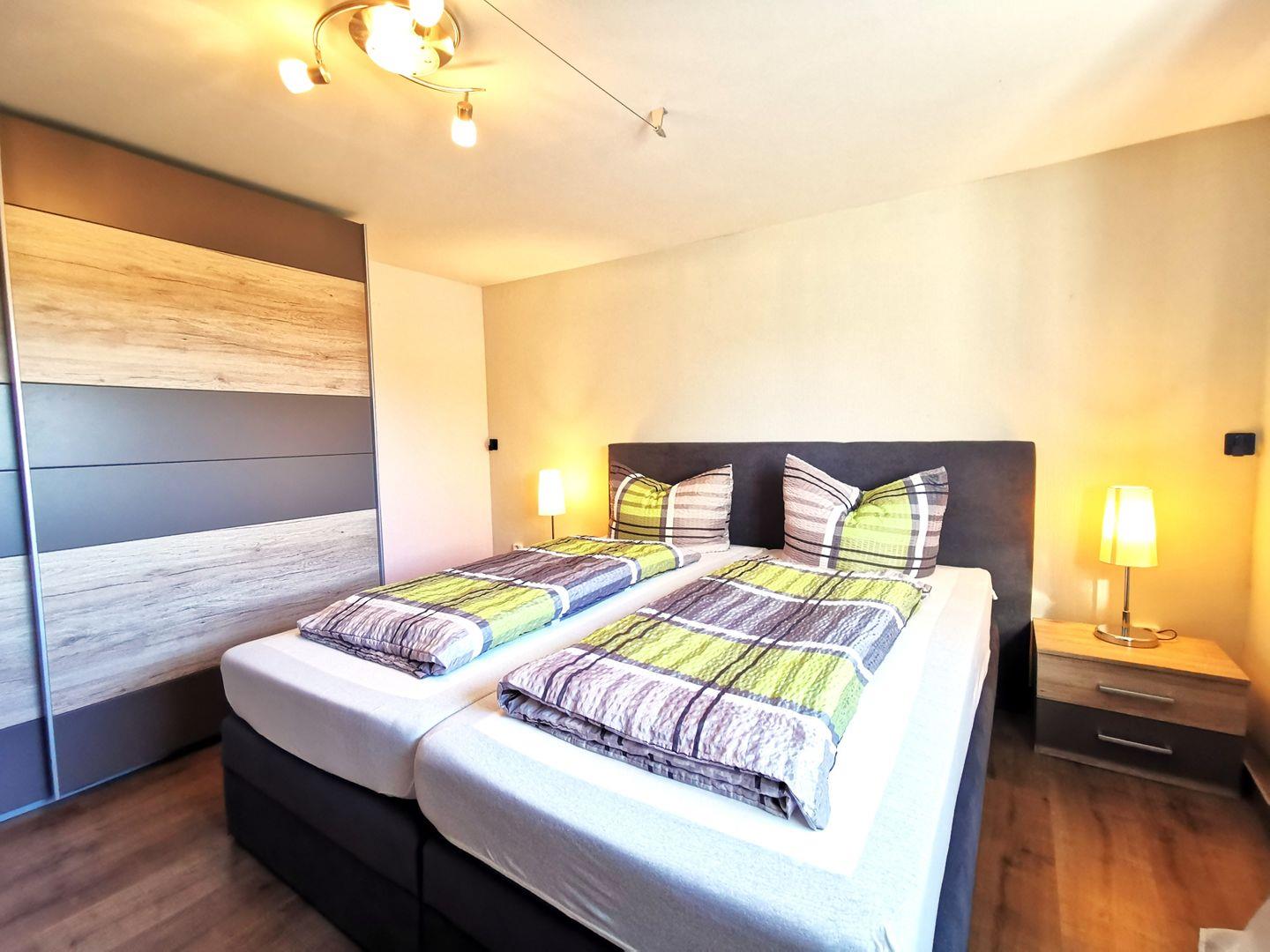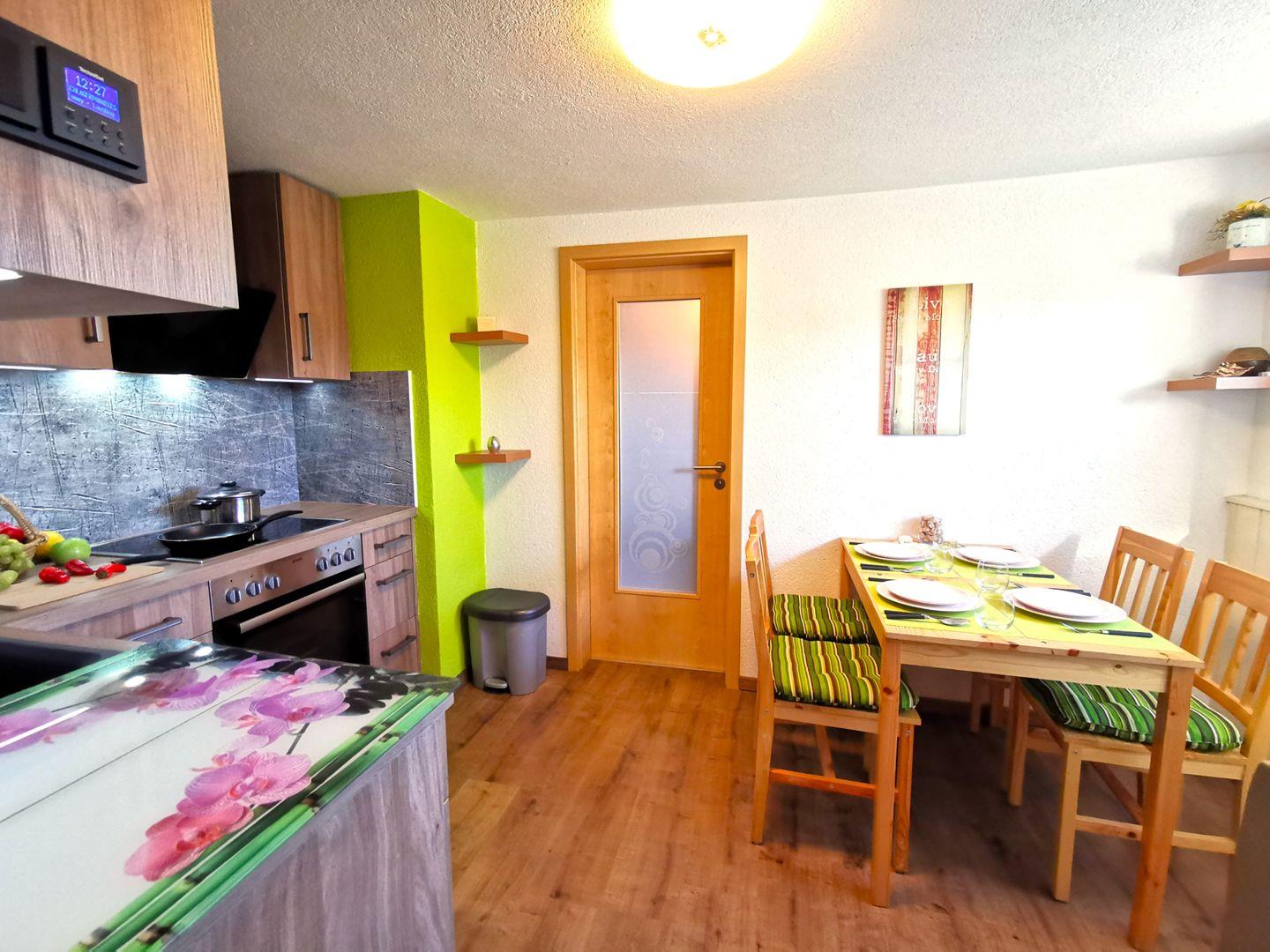 77m² Ferienwohnung mit 1 Schlafzimmer für 1-4 Personen, voll eingerichteter Küche, modernem Wohnzimmer und Bad mit Dusche, Terrasse mit Talblick.