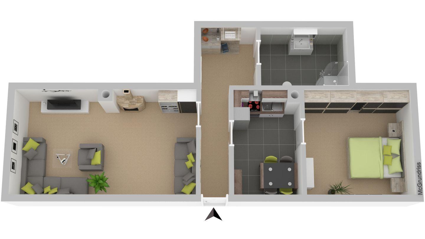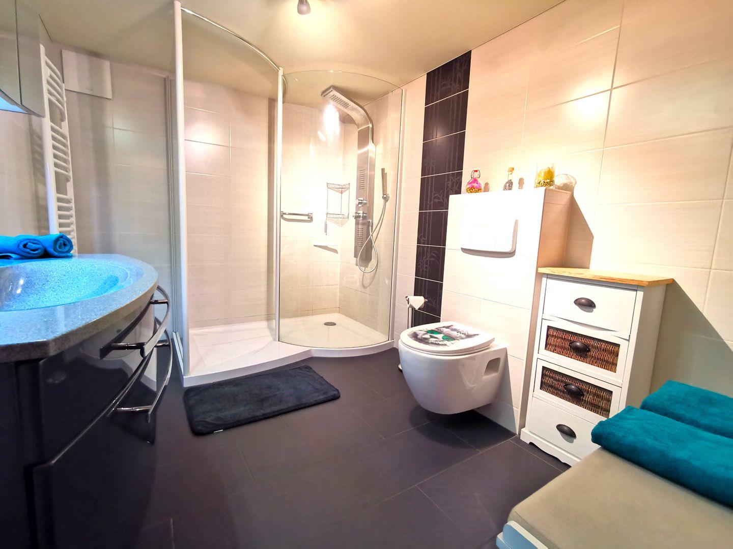 Die Wohnung ist mit ihren 77m² ideal für 2 bis 4 Personen. Voll möbliert und ausgestattet bietet sie ein Schlafzimmer mit Doppelbett, eine Küche mit Esstisch für 4 Personen, ein großzügiges, modernes Badezimmer mit Regendusche und ein Wohnzimmer mit großem Sofa, Kamin und einem bequemen Schlafsofa für weitere 2 Personen.