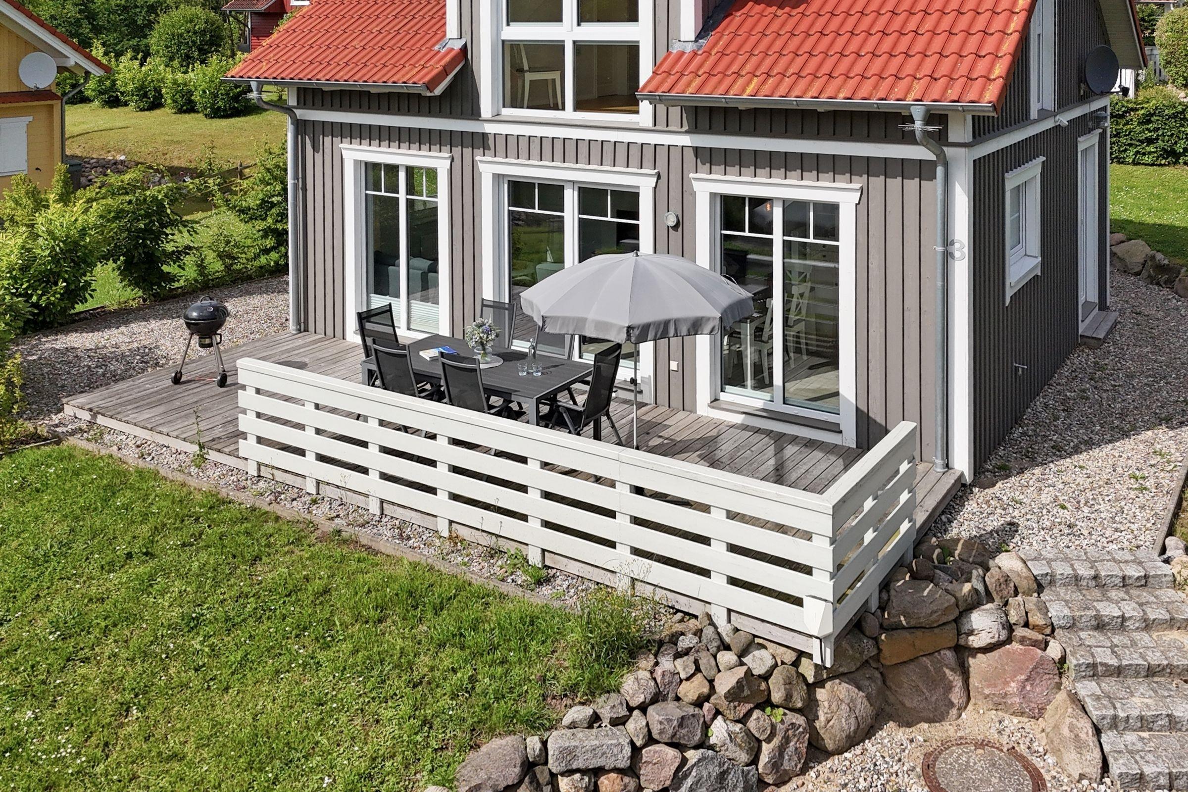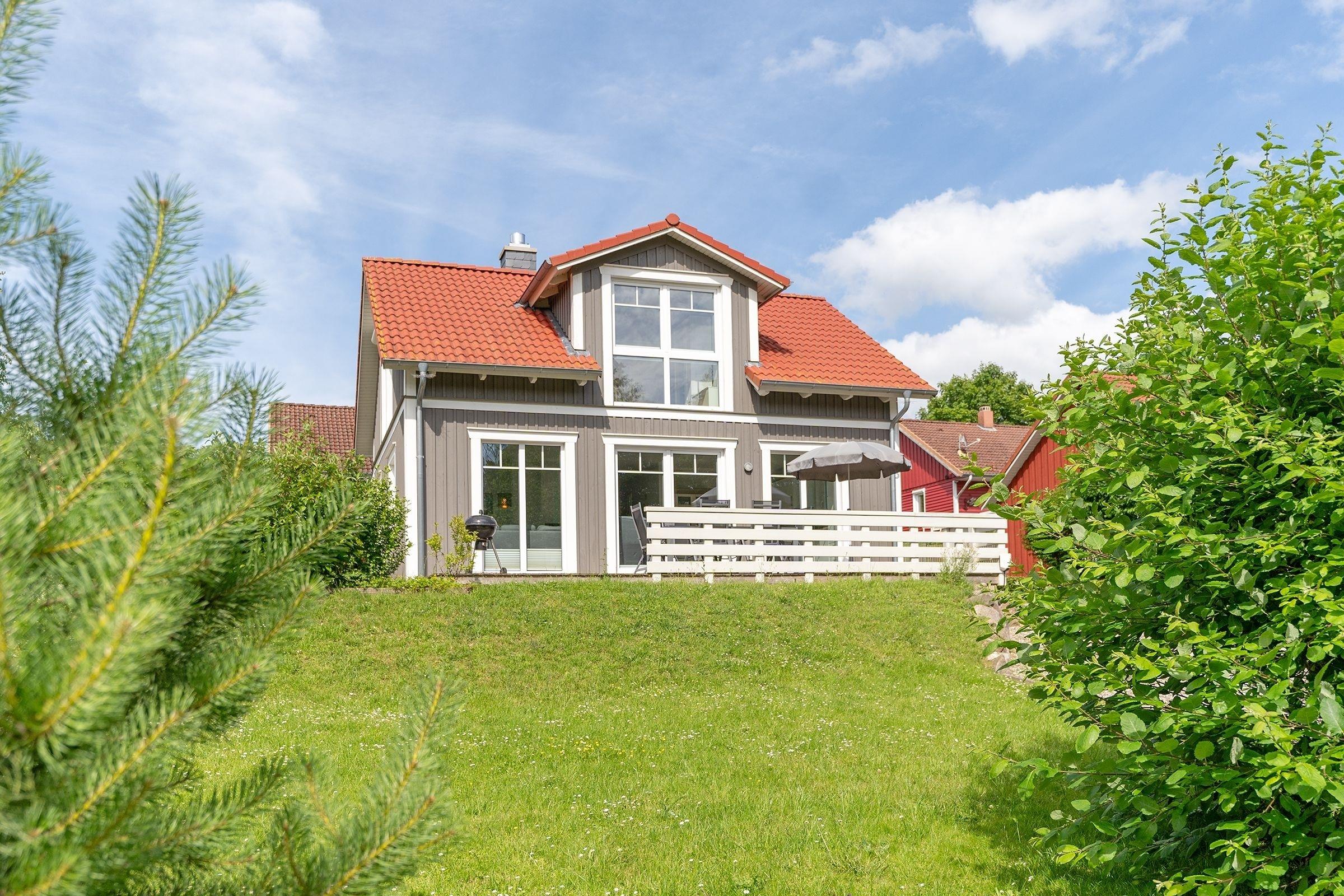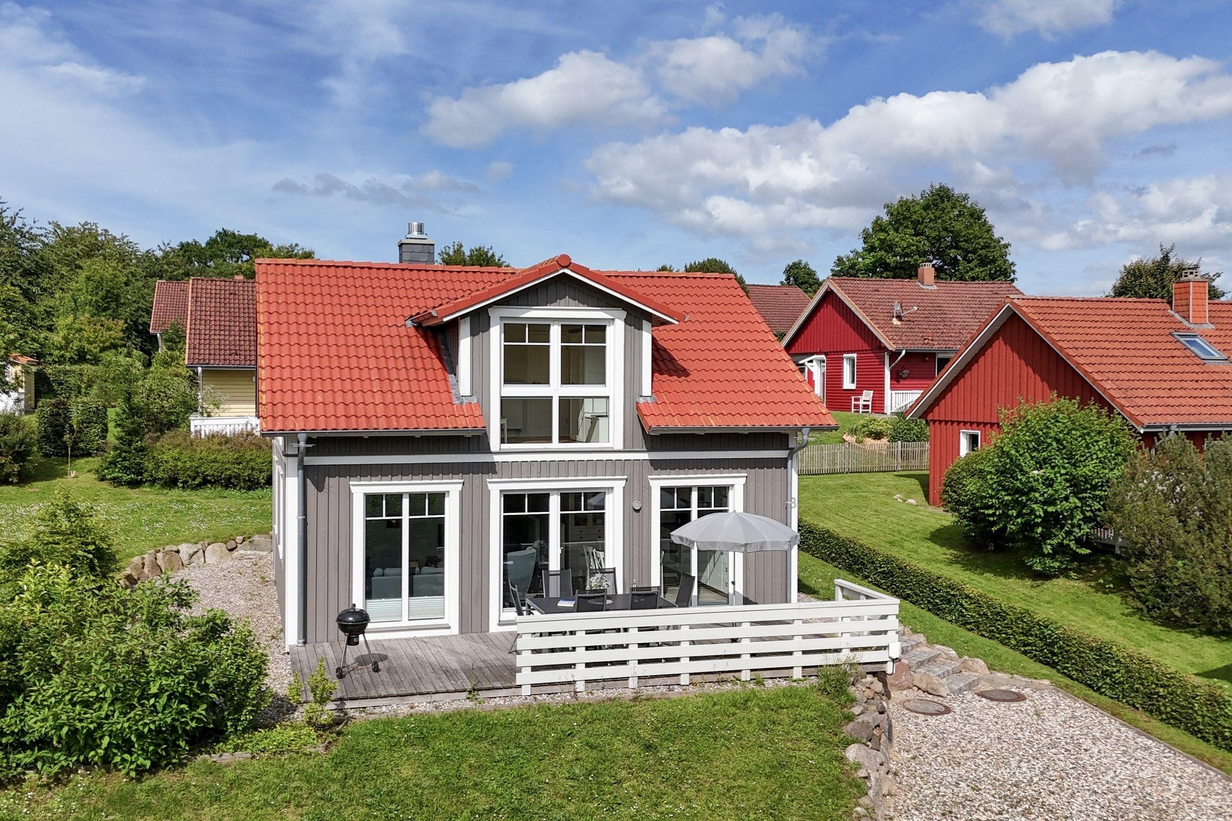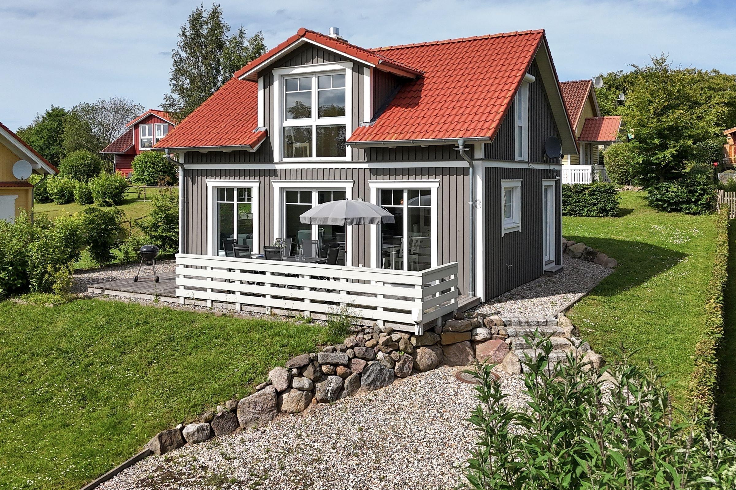 Idylle pur: schickes Schwedenhaus in Mönchneversdorf mit 3 Schlafzimmern, 2 Bädern, Sauna, großer Terrasse, Garten und einer Wohnfläche von ca. 68 m² für bis zu 6 Personen.