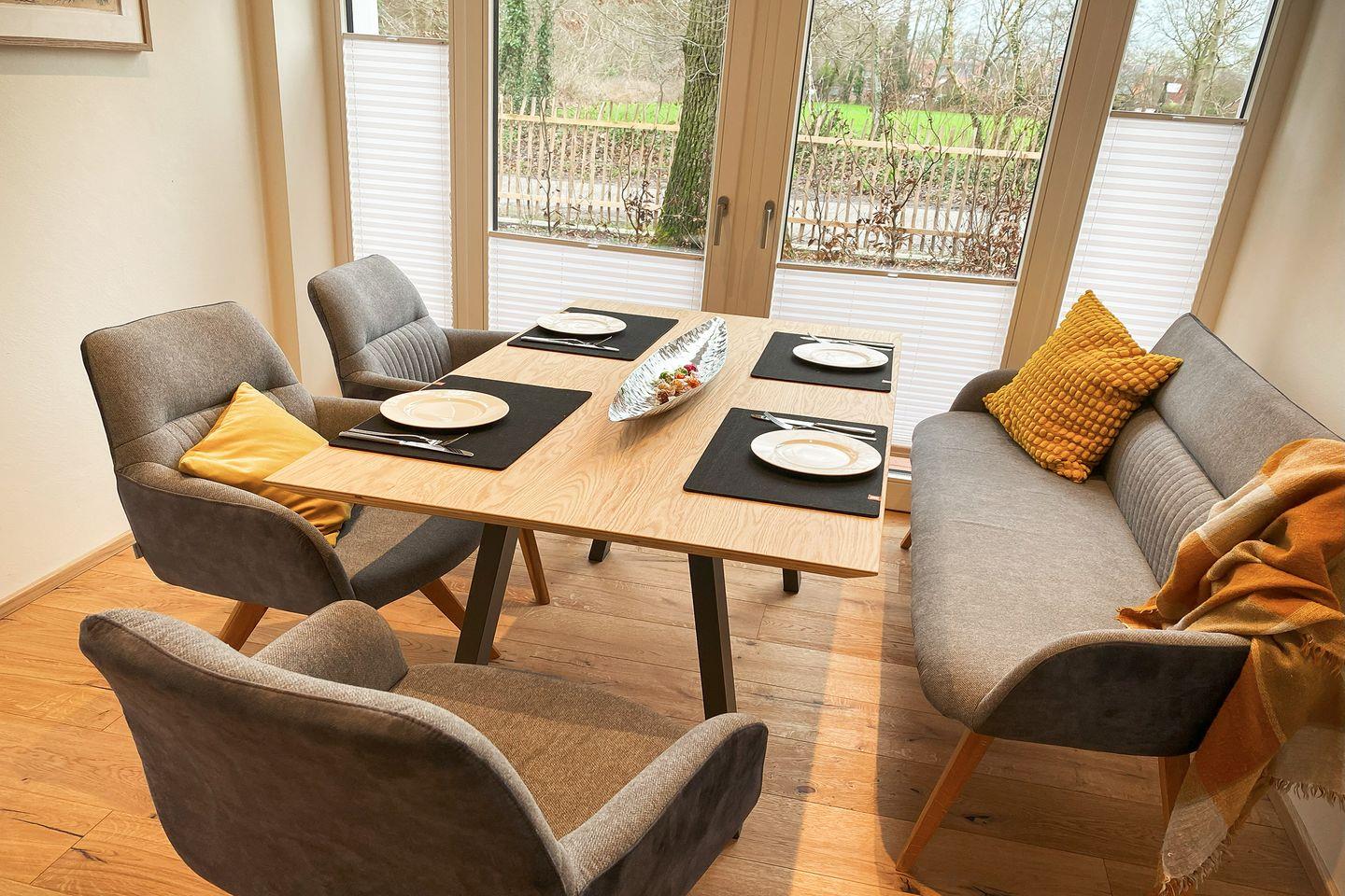 Herzlich willkommen in der Wohnung „Diele“ – einer charmanten Maisonette im historischen Haupthaus des Hof Egbers. Die liebevoll restaurierten Details erzählen von der Geschichte des alten Bauernhofs und schaffen zugleich eine moderne, einladende Atmosphäre.