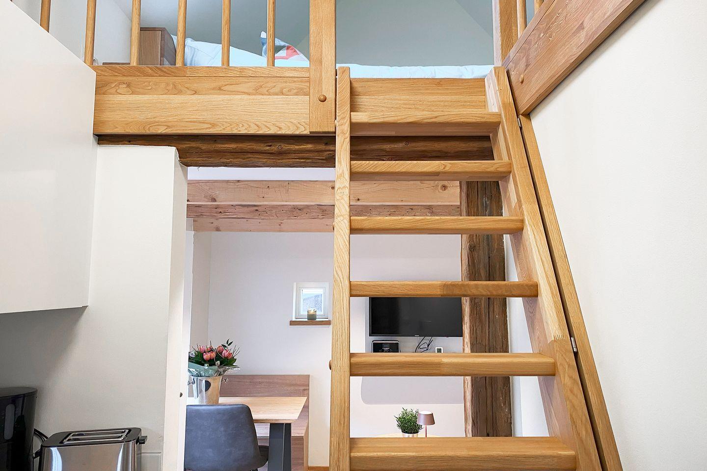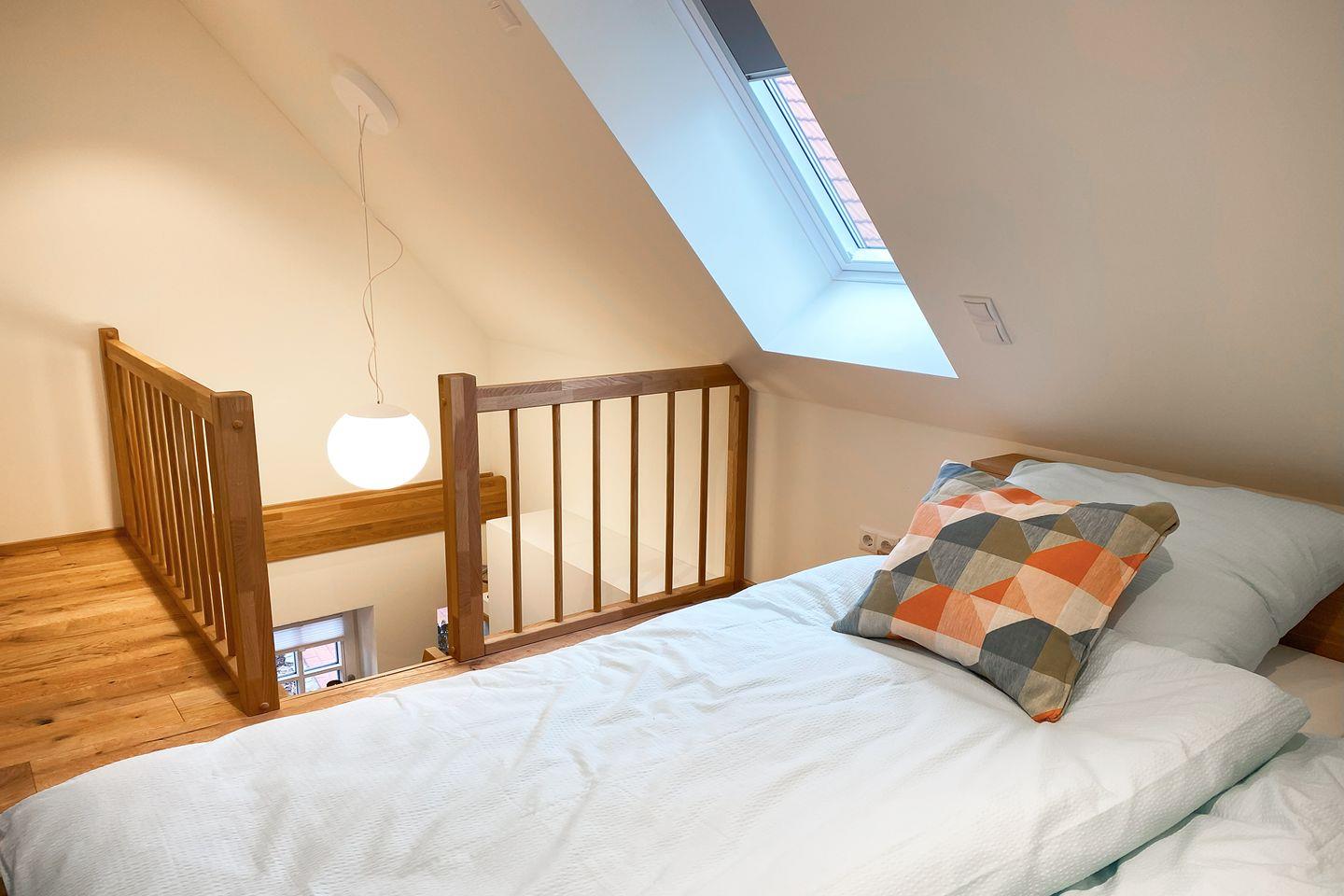 Das separate Schlafzimmer ist mit einem komfortablen Doppelbett (180 × 200?cm) ausgestattet. Ein Kleiderschrank sowie Ablagemöglichkeiten bieten ausreichend Platz für deine persönlichen Dinge. Dank der ruhigen Lage schläfst du hier besonders erholsam.