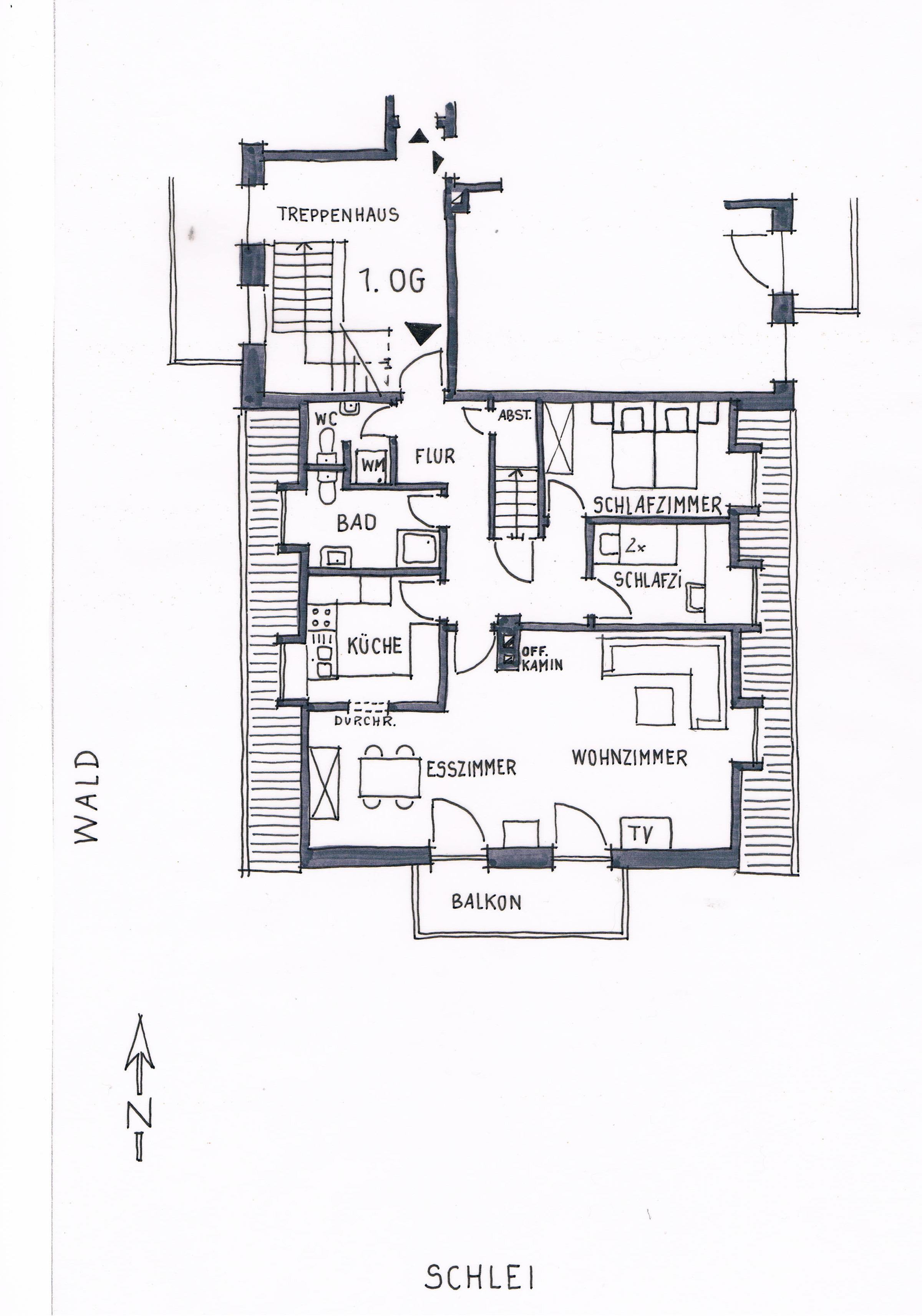Sie finden einen großen lichtdurchfluteten Wohn- und Essbereich mit einem Balkon vor. Vom Balkon und aus dem Wohnzimmer hat man einen wunderschönen Blick über die Schlei und auf das Naturschutzgebiet Reesholm.