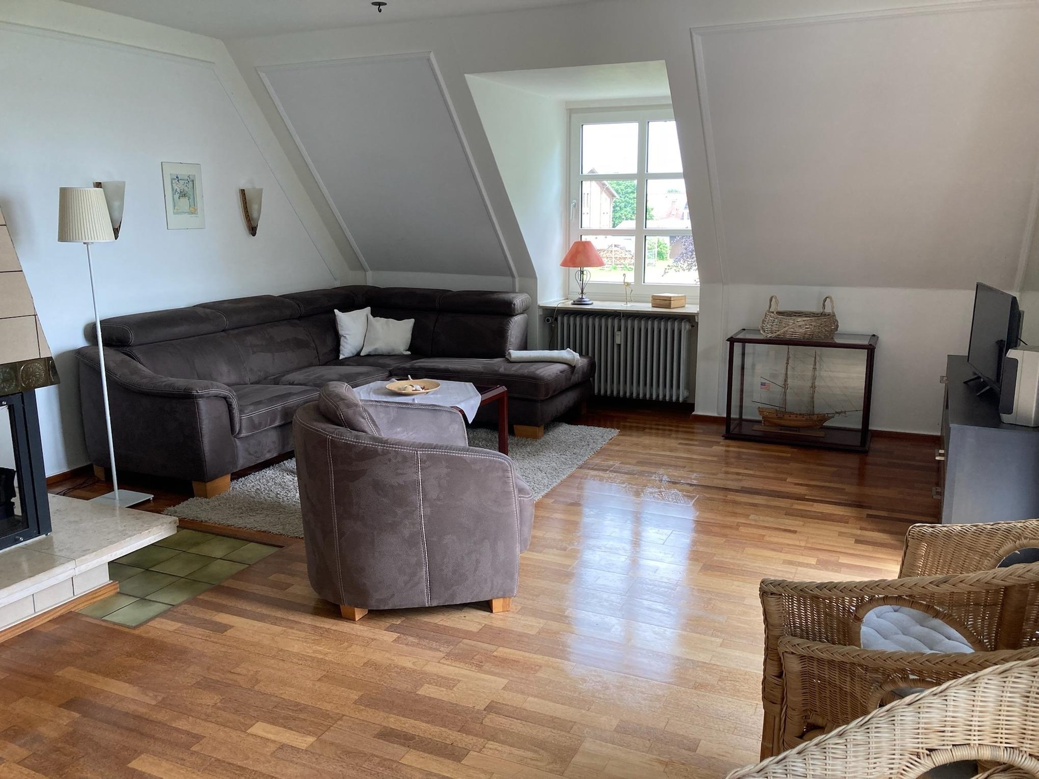 Die Ferienwohnung (88 m²) befindet sich im ersten Stock des Herrenhauses.