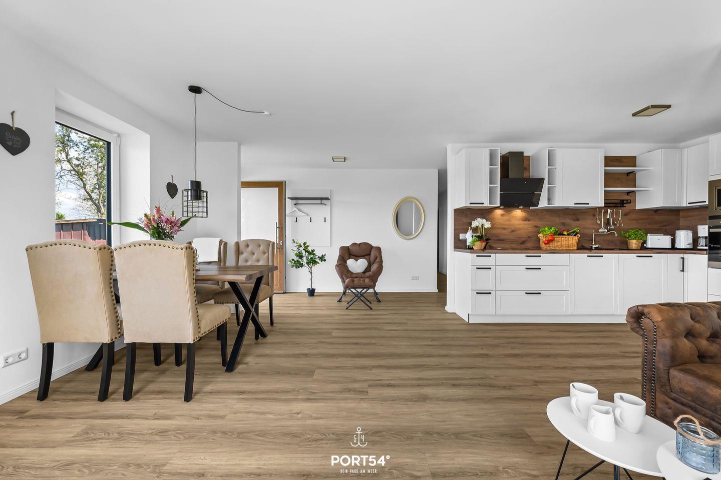 Zu den weiteren Annehmlichkeiten gehören ein Privatparkplatz für bis zu zwei Fahrzeuge sowie eine Terrasse, auf der Sie die frische Seeluft genießen können. Es gibt einen gemeinschaftlichen Außenbereich mit den anderen Ferienwohnungen. Außerdem sind Kinder herzlich willkommen und Haustiere bis zu maximal zwei Tieren sind gern gesehen.