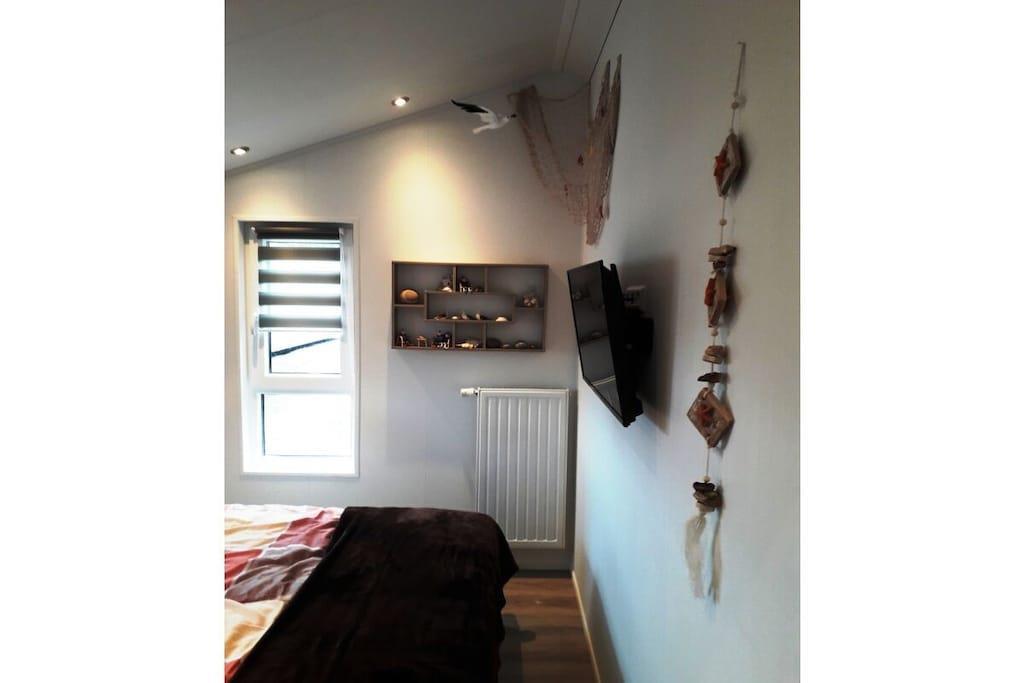Unser komfortables Ferienhaus ( 60 qm incl. Terrasse, reine Wohnfl.40qm) bietet Platz für 4 Personen. In den insgesamt 2 Schlafzimmern befinden sich ein Doppelbett ( 160x200 cm ) und ein TV Flachbildschirm. Das andere Schlafzimmer ist mit zwei Einzelbetten ( 80x200 cm ) ausgestattet. Die Küche ist mit einem Ceranfeld, einer Geschirrspülmaschine, einer Mikrowelle mit Grillfunktion , einem großen Kühlschrank mit Gefrierfach so wie einer Kaffeemaschine und Toaster ausgestattet. Eine Teekanne, Wasserkocher, Mixer und viele Küchenhelfer sind ebenfalls vorhanden. Das Wohnzimmer ist mit einem großen TV Flatscreen ausgestattet . Ein Duschbad und eine überdachte Terrasse mit Beleuchtung , Rattan Möbel und Grill runden das ganze Bild ab.