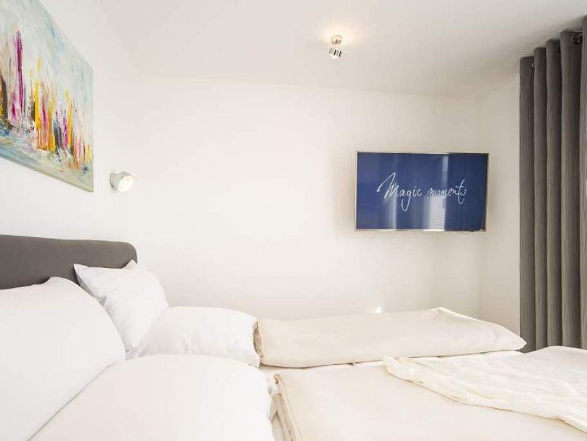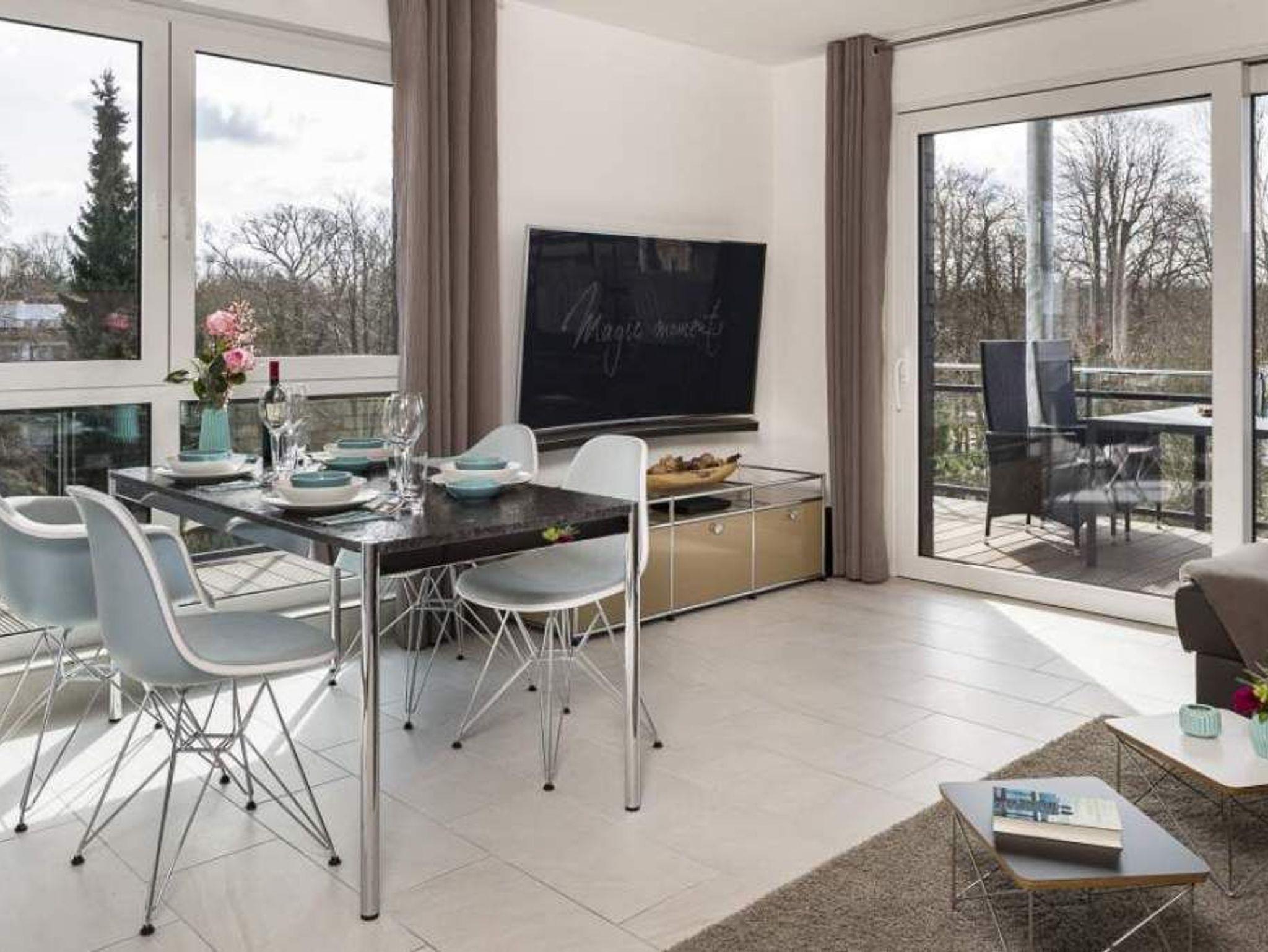 Diese schöne Design-Ferienwohnung zeichnet sich durch eine moderne, luxuriöse und stylische Inneneinrichtung aus, die bis ins Detail aufeinander abgestimmt ist. In der hochwertigen Warendorf-Küche mit Miele-Einbaugeräten, einer Nespresso-Maschine sowie ausgewähltem Rosenthal-Porzellan genießen Sie Ihr Frühstück oder andere kulinarische Höhepunkte. Freuen Sie sich auf Design-Klassiker wie USM Haller ( Esstisch, Vitrine und TV-Board) und Vitra Charles Eames ( Plastic Armchairs mit bequemer Polsterung und Couchtische). Ein Ledersofa mit Longchair, das mit wenigen Handgriffen zu einem vollwertigen Bett ( mit Lattenrost und Bultexmatratze 160x200m) umfunktioniert werden kann, sowie ein hochwertiges Boxspringbett (1,80 x 2,00 m) und ein Entertainment-Paket (Wohnzimmer: Samsung 65 SUHD curved 3D Smart-TV inkl. Soundbar, Schlafzimmer: Samsung 48 UHD Smart TV und kostenloses WLAN) lassen keine Wünsche offen.