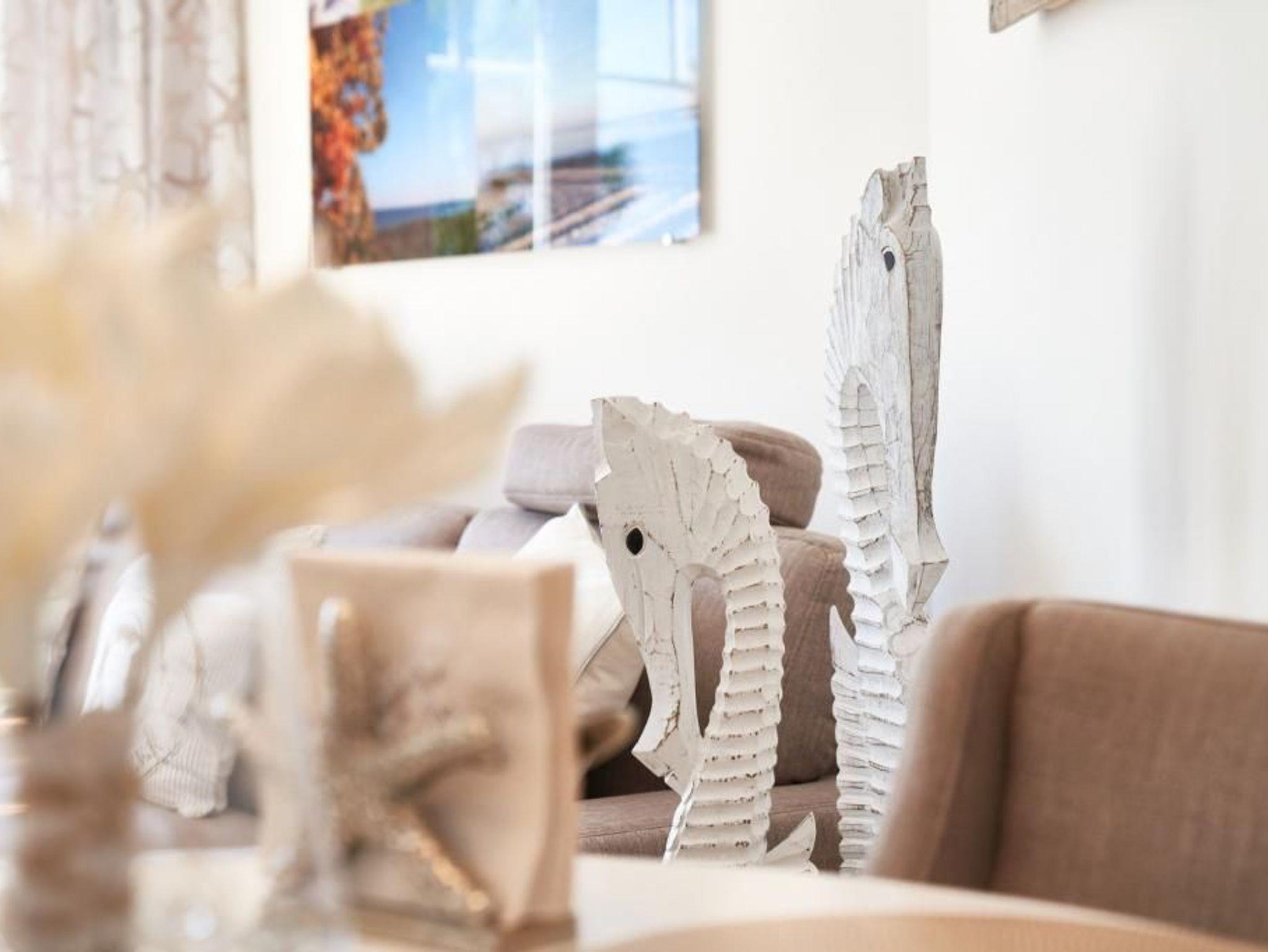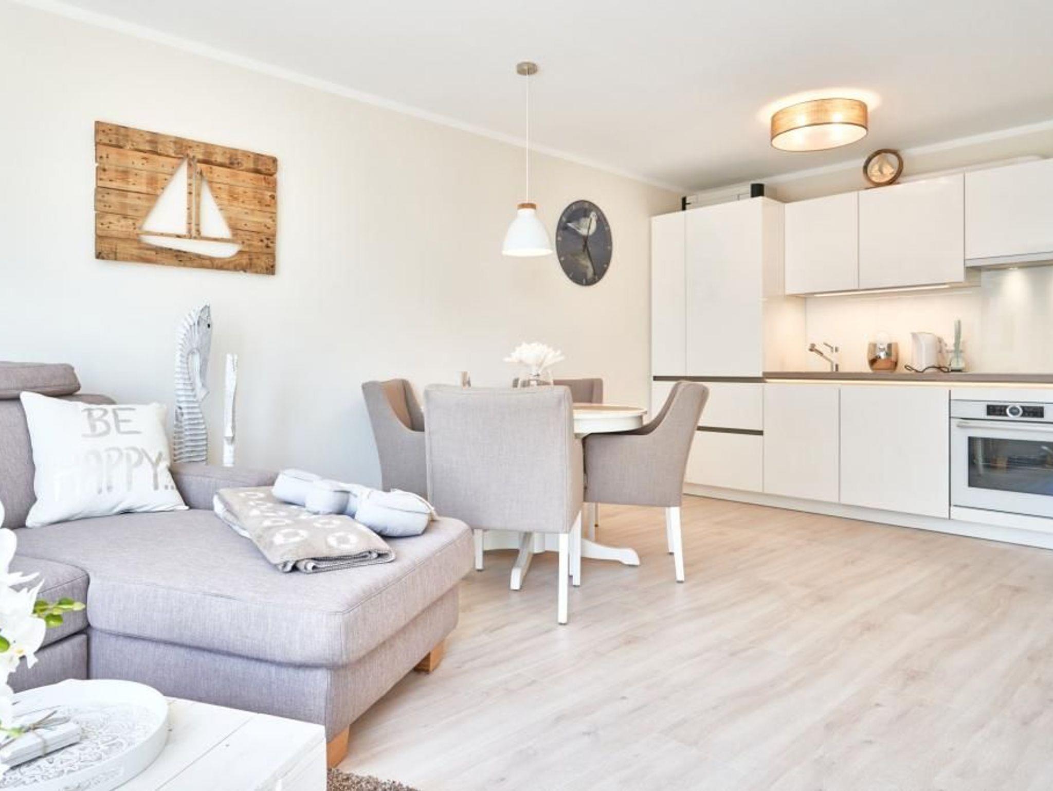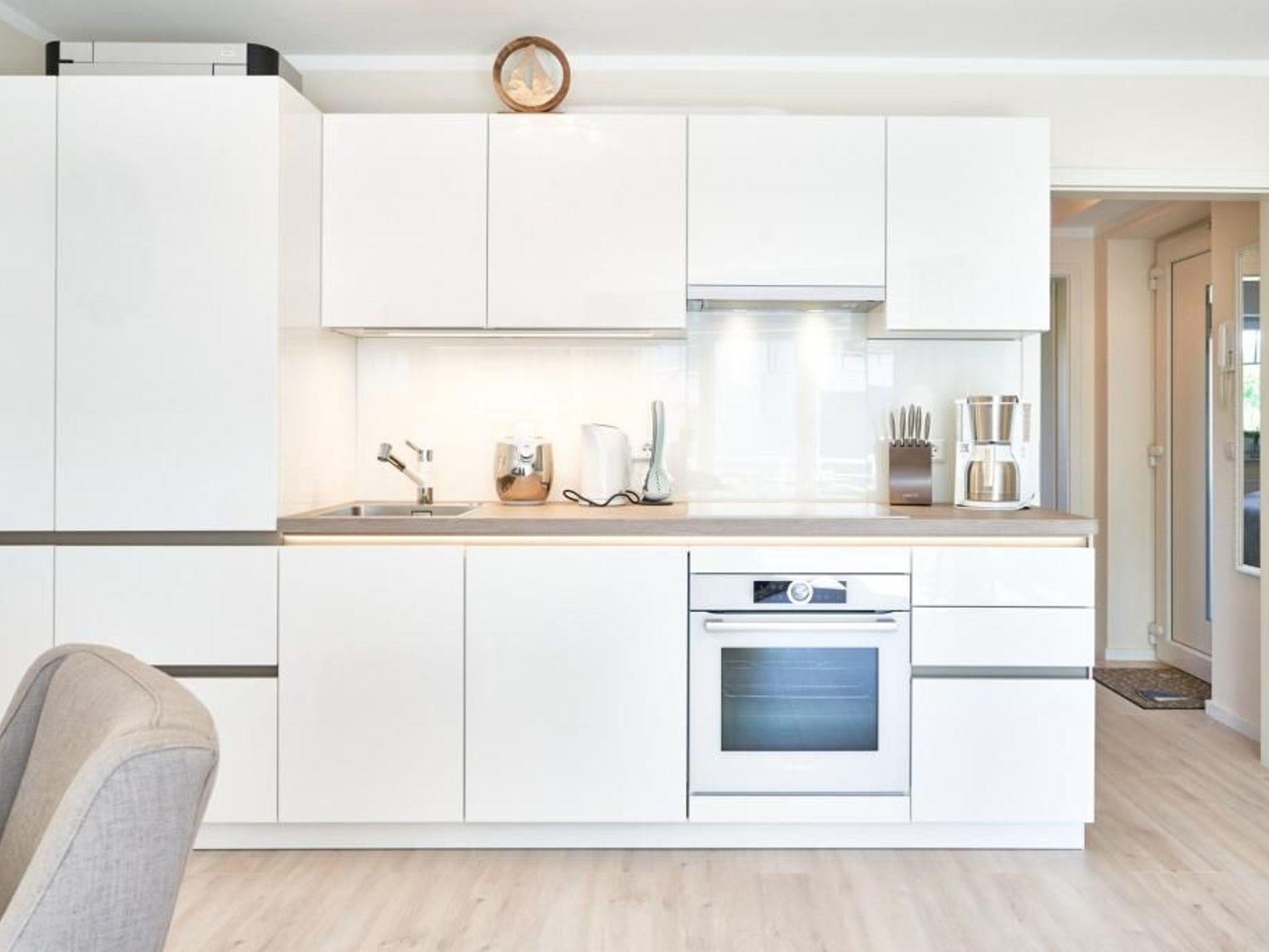 Das Duschbad ist in heller Optik gehalten. Der ansprechende Wohnbereich ist mit einer schönen Küchenzeile, einem Essbereich sowie einem gemütlichen Wohnbereich mit einer Sofaecke (Schlafsofa) ausgestattet. Neben einem Flachbildfernseher steht Ihnen selbstverständlich kostenloses WLAN zur Verfügung. Vom Wohnbereich aus gelangen Sie auf den Balkon. Von hier haben Sie einen schönen Ostseeblick. Die helle Küche lässt keine Wünsche offen. Der Esstisch bietet Ihnen ausreichend Platz für gesellige Stunden.