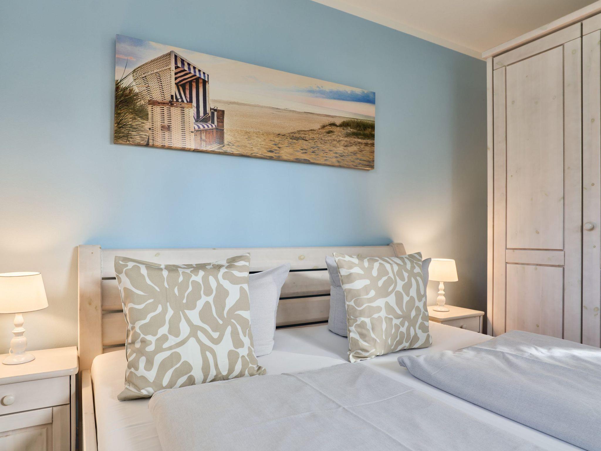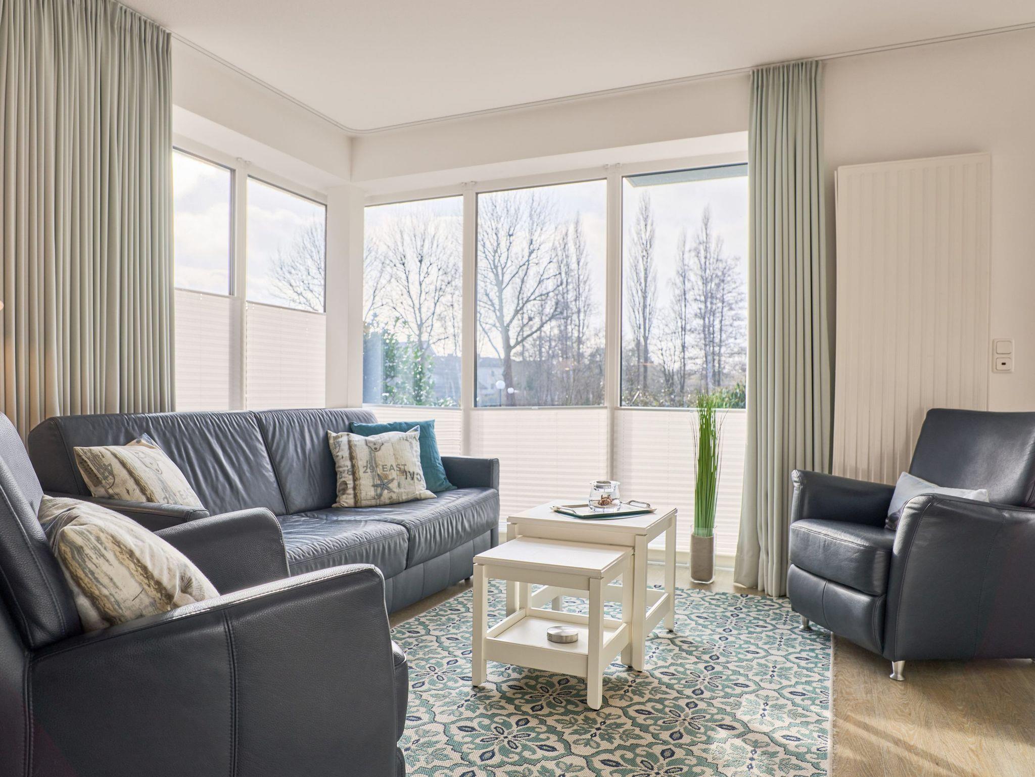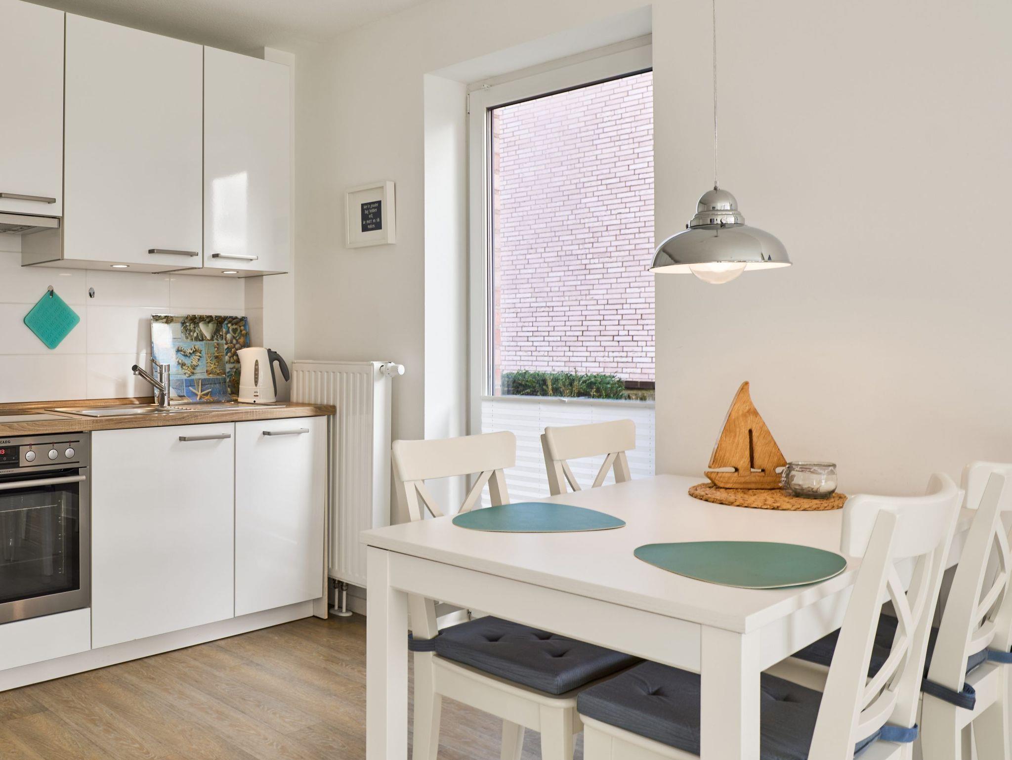Die Ferienwohnung ist mit einer hochwertigen, offenen Küche ausgestattet, an die sich ein gemütlicher Ess- und Wohnbereich anschließt. In diesem erwarten Sie ein Fernseher, CD-Player, Bücher und Spiele. Der gemütliche Wohnbereich lädt zum Entspannen ein. Ein ausziehbares Ledersofa mit Lattenrost und Bultexmatratze, Liegefläche 1,60x2,00m bietet eine weitere Schlafgelegenheit. Der Wohn- und Essbereich bietet Ihnen genügend Platz für ein ausgiebiges Frühstück mit Blick in den Garten. Die Küche ist komplett ausgestattet. Ihnen stehen eine Filterkaffeemaschine, eine Senseo Padmaschine, ein Wasserkocher sowie ein Toaster zur Verfügung. Das Schlafzimmer verfügt über ein großes Doppelbett (1,60x2,00m) und einen geräumigen Kleiderschrank und hat ebenfalls direkten Zugang zur großzügigen Terrasse mit Strandkorb und Sonnenschirm. Das Badezimmer verfügt über eine bodentiefe Dusche, Fußbodenheizung sowie einen Handtuchheizkörper. In dem Abstellraum befindet sich eine Waschmaschine. Selbstverständlich steht Ihnen auch in dieser Wohnung kostenloses WLAN zur Verfügung.