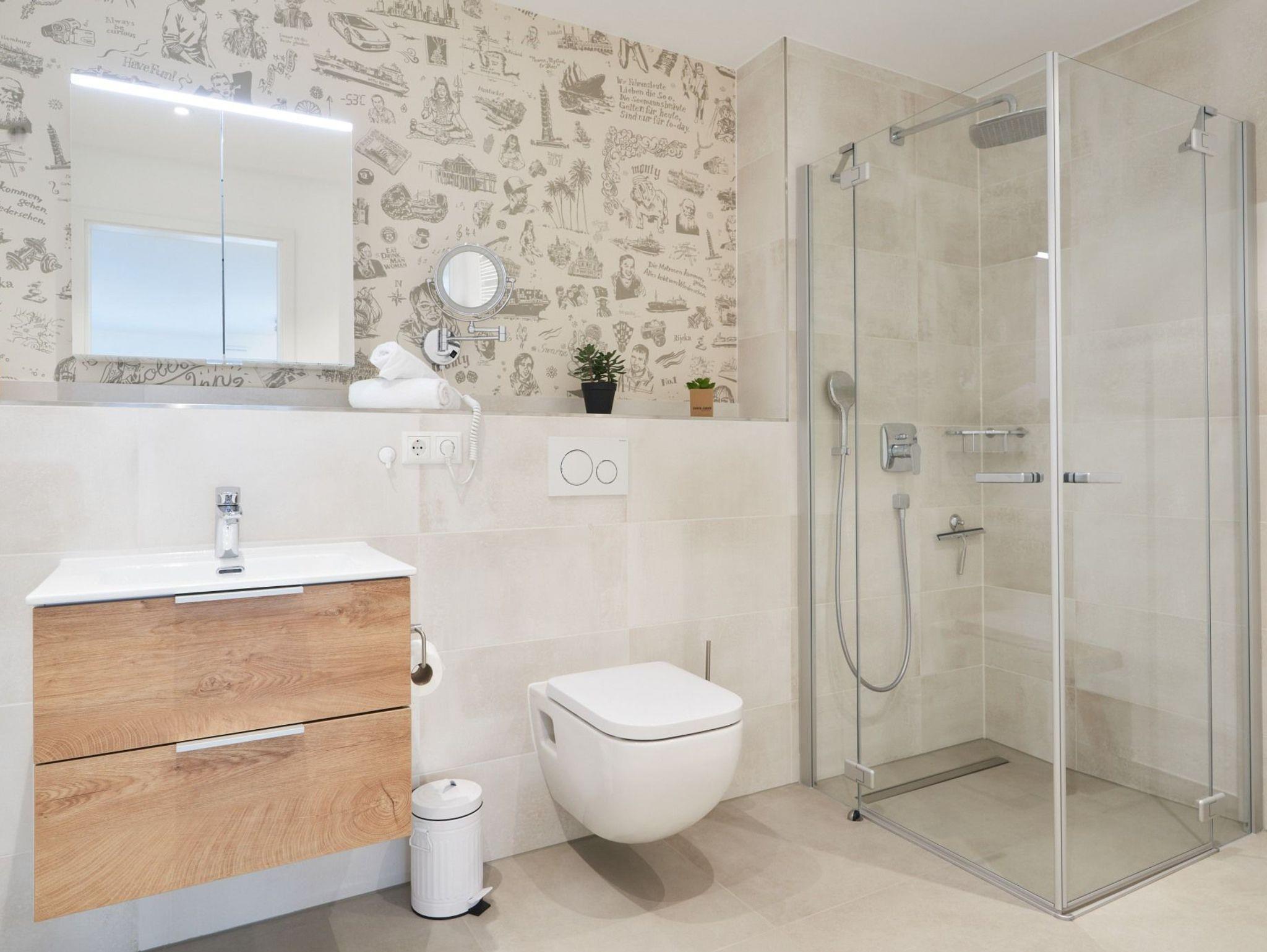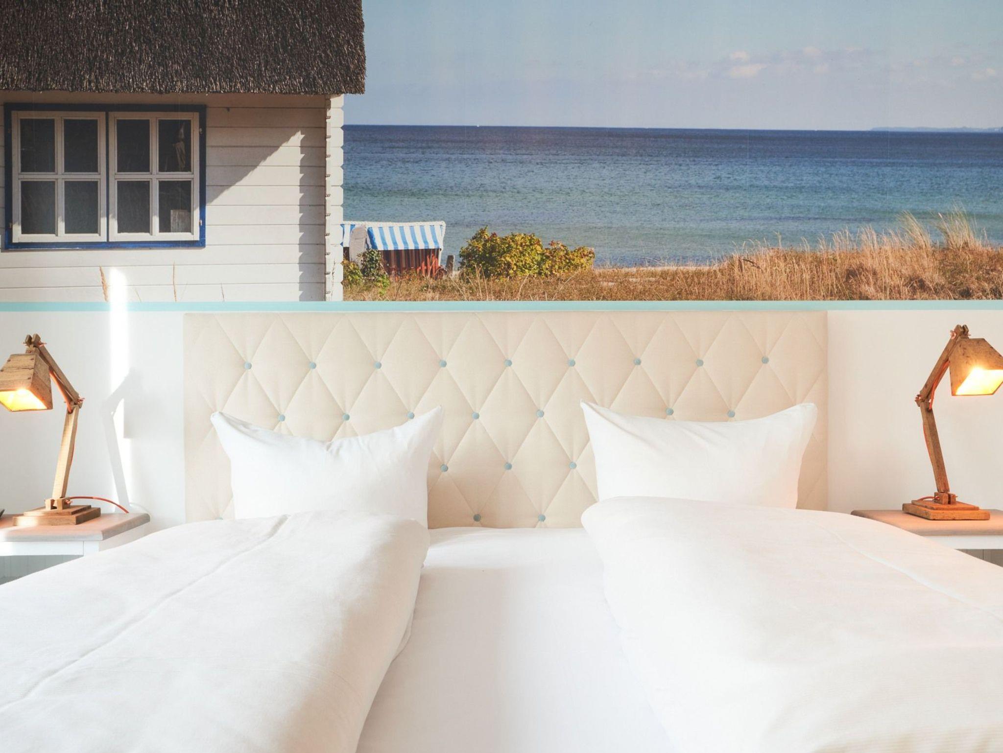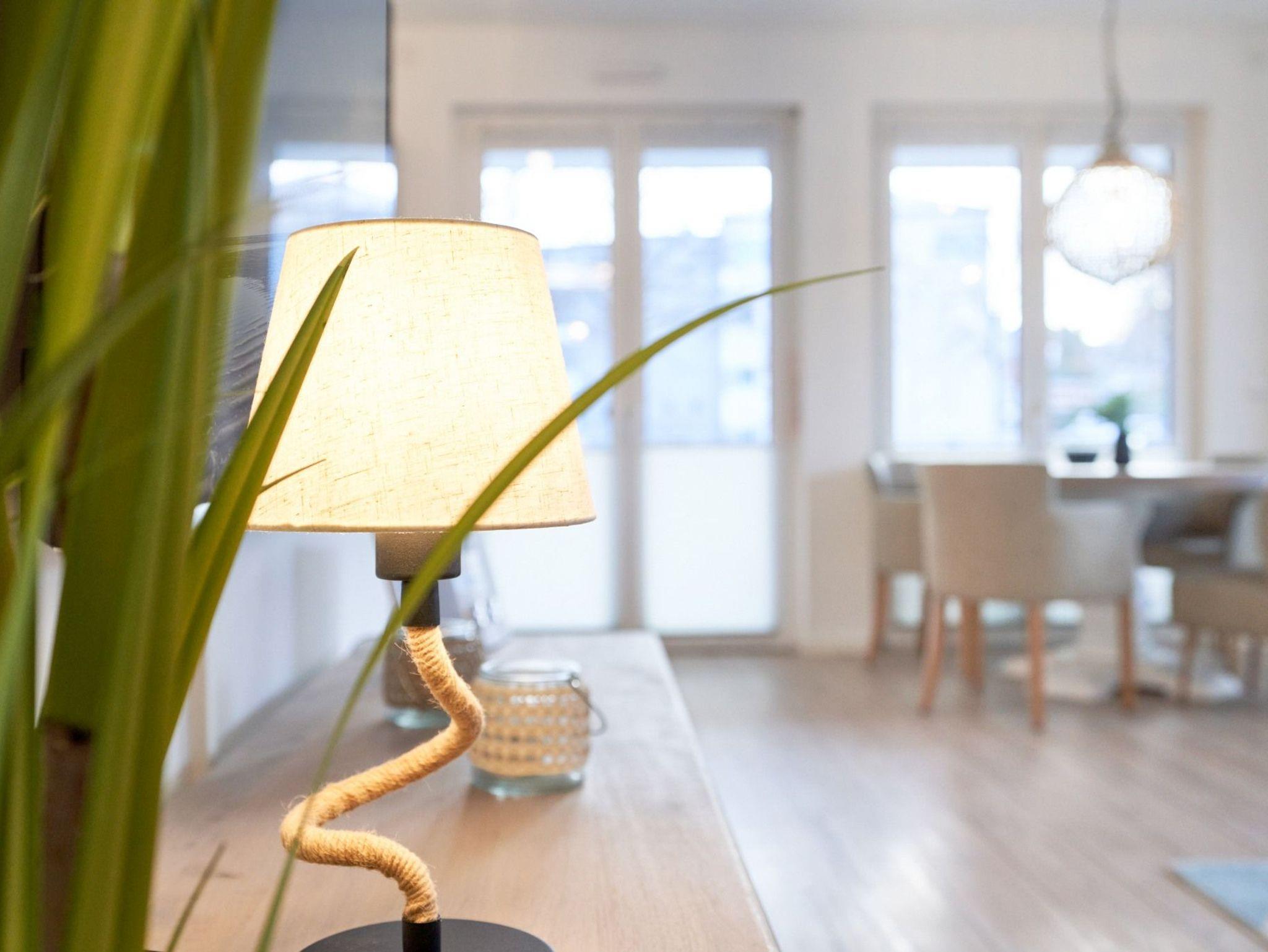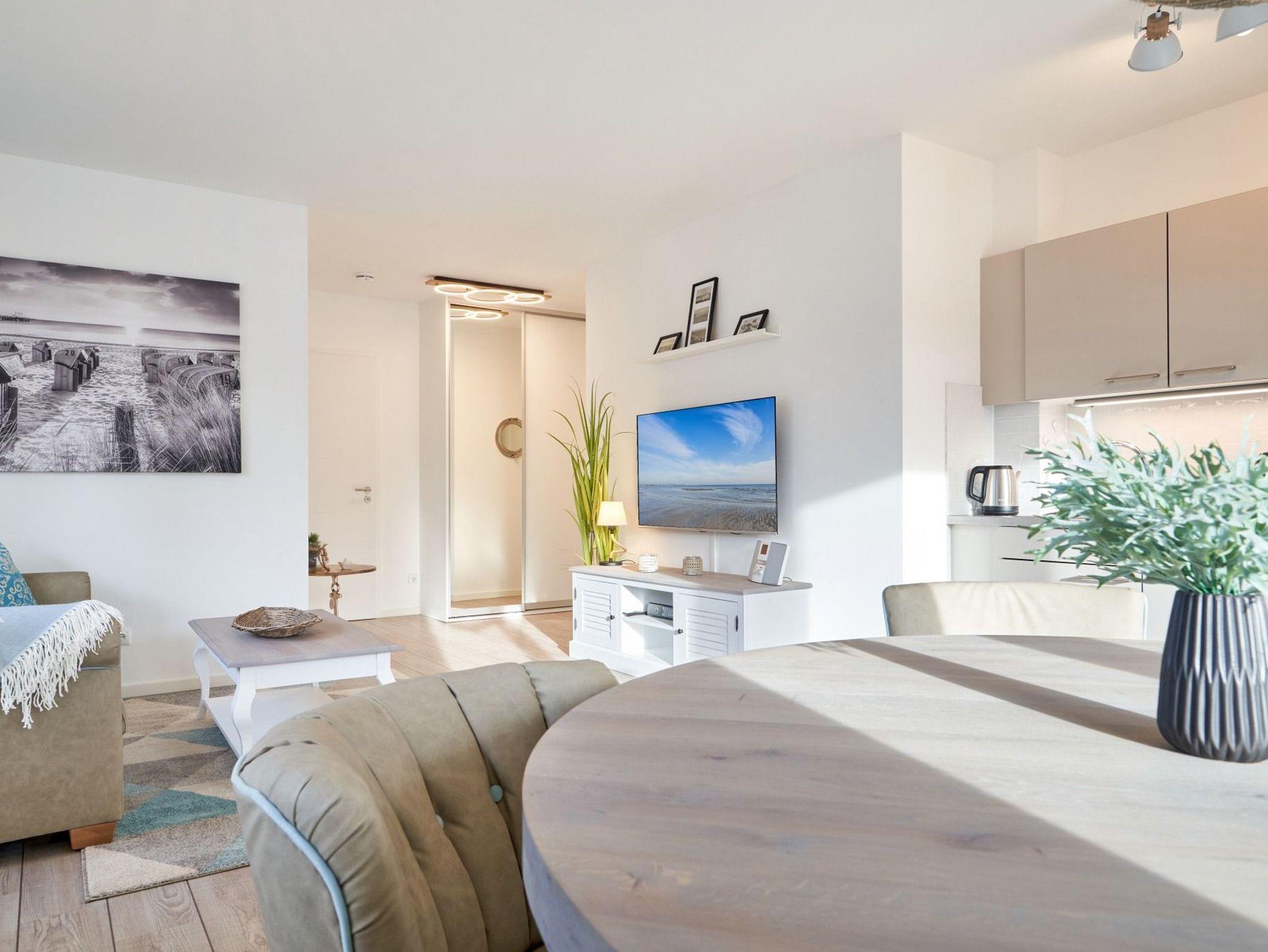 Die 2-Zimmer-Ferienwohnung LEE ist mit bodentiefen Fenstern ausgestattet. An allen Fenstern befindet sich ein Sichtschutz. Die Einbauküche ist komplett ausgestattet. Backofen, Ceran-Kochfeld, Mikrowelle, Geschirrspüler, Kühlschrank mit Gefrierfach, Filterkaffeemaschine, Tassimo-Kapselmaschine, Eierkocher, Mixer, Toaster und Wasserkocher. Sehr schöner, heller Wohnbereich mit einem hochwertigen Sofa, welches mit kurzen Handgriffen in ein bequemes Schlafsofa ( 1,30m x 1,95m) hergerichtet werden kann. [nbsp] Wand-TV ( 55 Zoll ), Internetradio . Der feine Essbereich ist mit einem runden Tisch und mit vier bequemen Sesseln ausgestattet. [nbsp] Aus dem Wohnbereich gelangen Sie auf den herrlichen, überdachten Süd-West-Balkon. Hier stehen Ihnen Tisch und Stühle zur Verfügung. Das Schlafzimmer ist mit einem Boxspringbett (2,00 m x 2,00 m), einem Kleiderschrank, 2 Nachttischen sowie einem Wand-TV (43 Zoll) ausgestattet. Sind Sie es gewohnt, im Dunkeln zu schlafen? Kein Problem, denn im Schlafzimmer stehen Ihnen elektrische Außenrollläden zur Verfügung. Das Duschbad in heller Optik mit bodengleicher Dusche / Regendusche, mit separater Handbrause, Handtuchheizkörper, Fön, Kosmetikspiegel. Die gesamte Wohnung ist mit einer Fußbodenheizung ausgestattet.