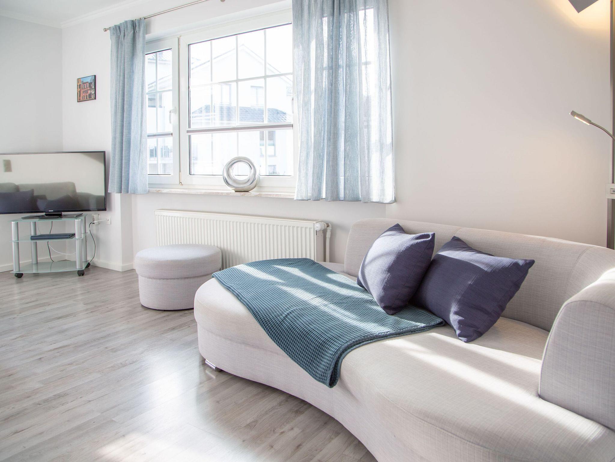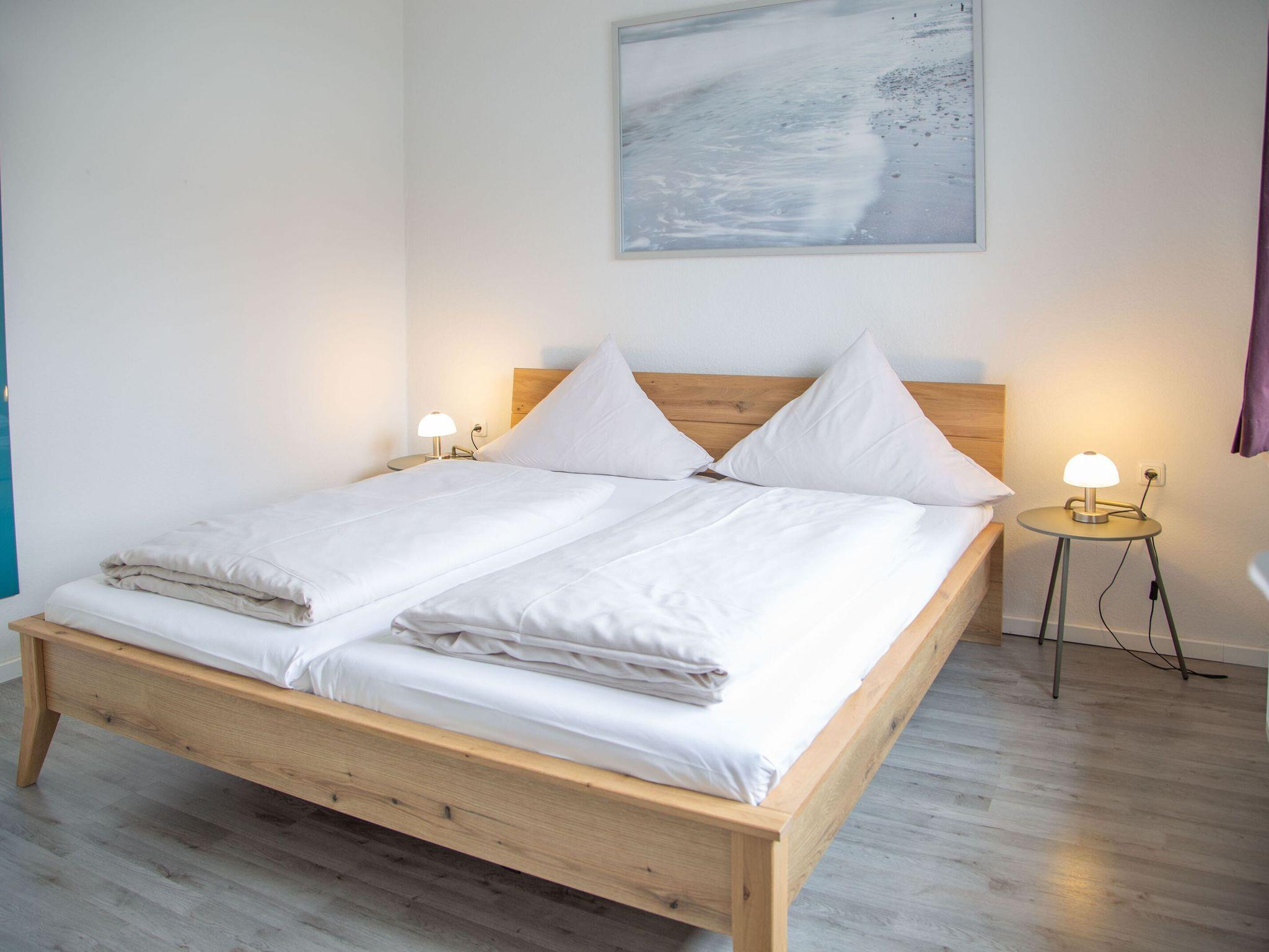 Die helle Ferienwohnung Appartement 05 mit Balkon im Haus Gästehaus Daheim bietet auf 54 m² Platz für bis zu 4 Personen (zzgl. max. 1 Babybett). Sie befindet sich in der ersten Etage und verfügt über 2 Schlafzimmer, 2 Badezimmer, 1 Wohnzimmer, 1 Küche und einen großen Balkon. Für die Raucher unter unseren Gästen befindet sich auf dem Balkon ein Aschenbecher. Ein Parkplatz steht direkt am Haus kostenfrei zur Verfügung.