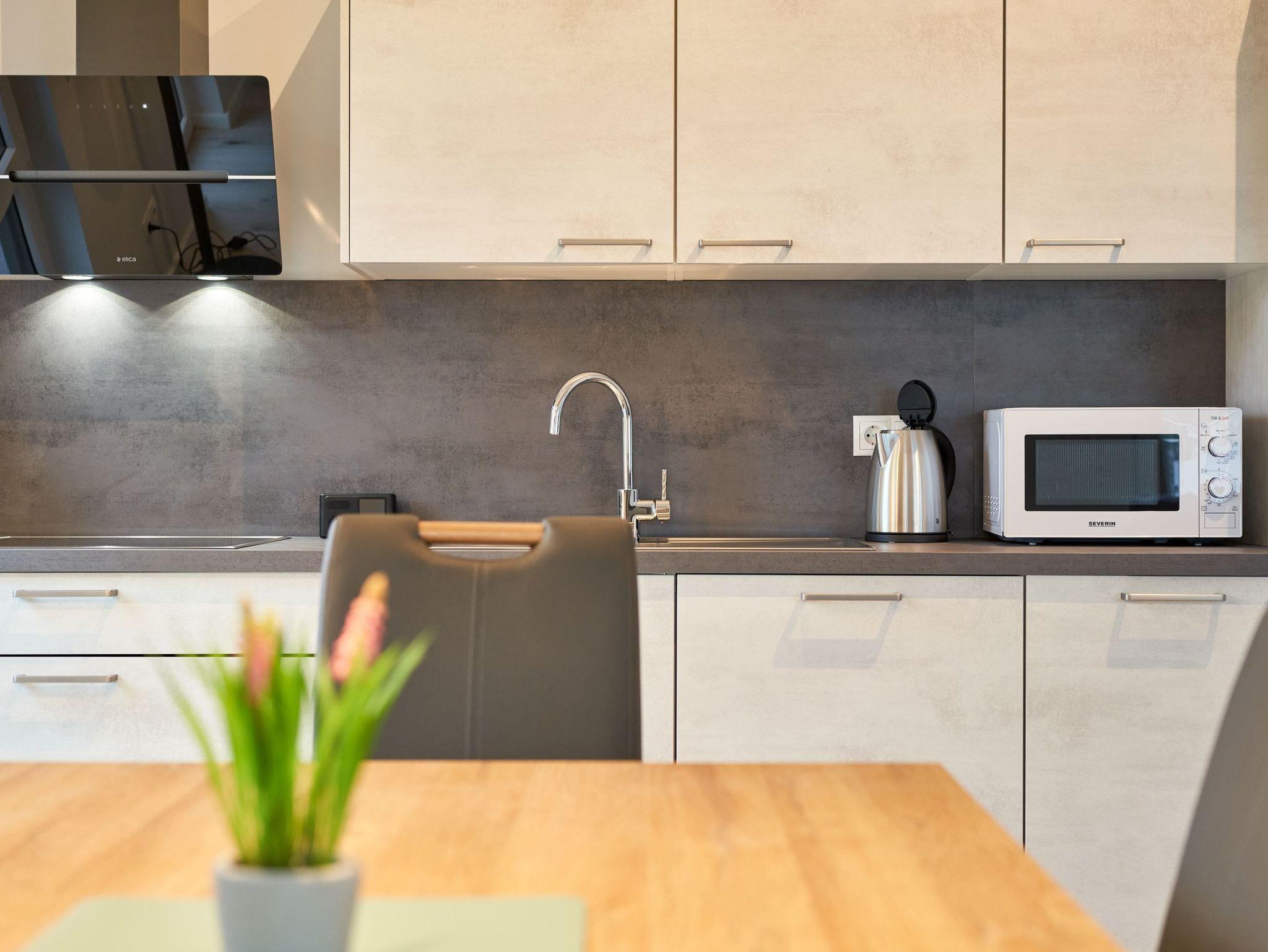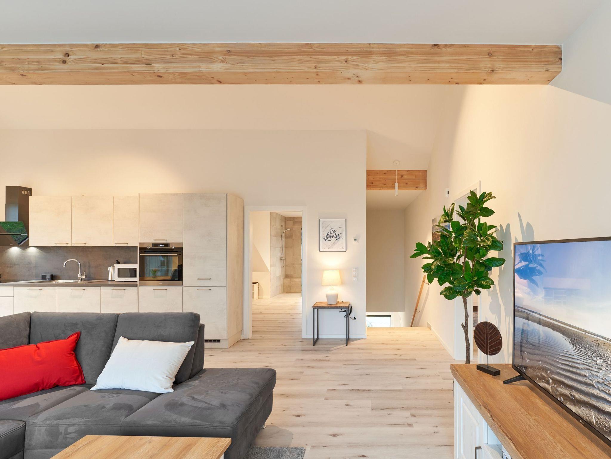 Genießen Sie Ihren Urlaub in dieser lichtdurchfluteten Ferienwohnung, die Ihnen mit ihren zwei geräumigen Schlafzimmern, 2 Duschbädern und dem großen Wohnzimmer mit integrierter Küchenzeile ihre wohlverdiente Entspannung bietet.