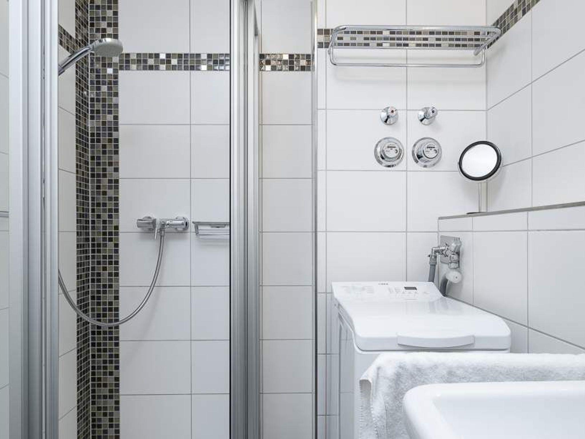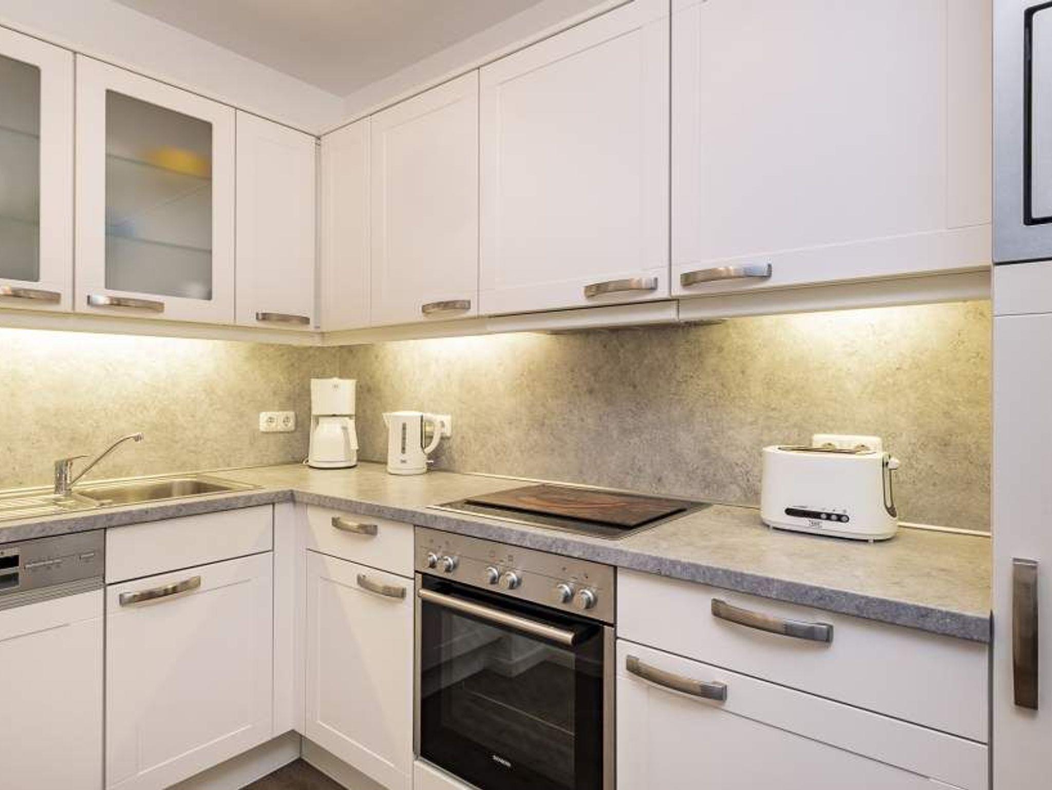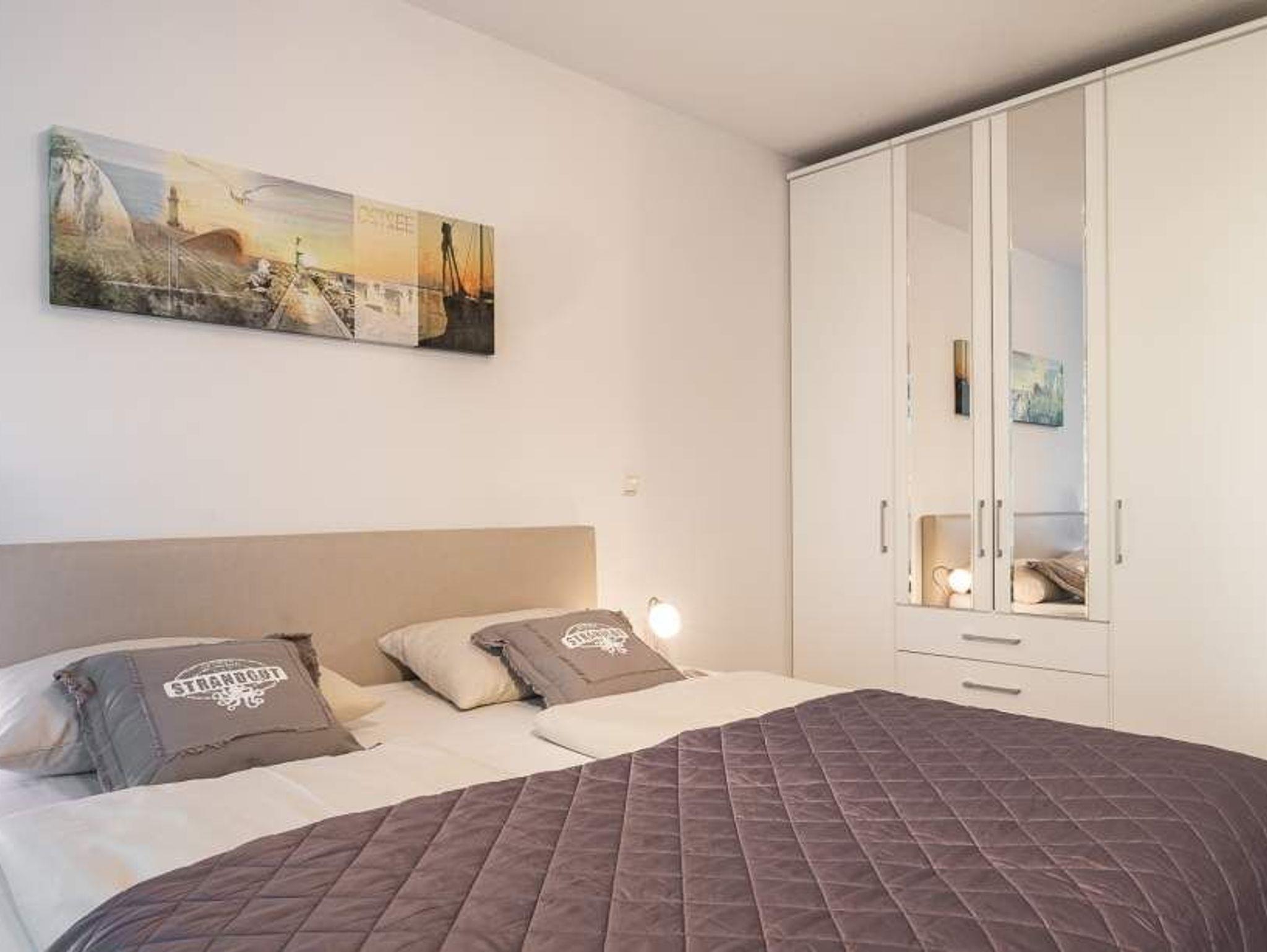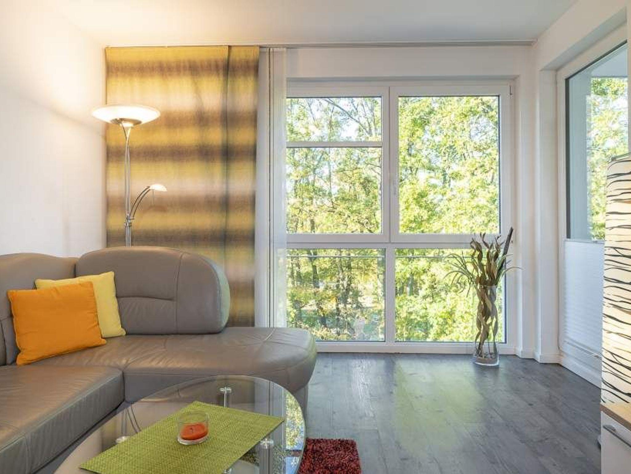 Der helle Wohnbereich mit bodentiefen Fenstern bietet einen Essplatz für 4 Personen, ein gemütliches Sofa, das sich mit wenigen Handgriffen in eine Schlafcouch (1,70 x 2,00m) verwandeln lässt, einen Flachbild-TV, WLAN, eine iPod-Dockingstation, einen Blue-Ray-Player, eine Stereoanlage und einen Safe. Die voll ausgestattete Küche lässt keine Wünsche offen. Vom Balkon aus hat man einen seitlichen Blick aufs Meer und die Aussicht in den Kurpark. Ein komfortables Doppelbett (1,80 m x 2,00 m) sorgt im Schlafzimmer für eine erholsame Nachtruhe. Hier finden Sie den zweiten Flachbild-TV. Im Badezimmer mit bodengleicher Dusche ist auch die Waschmaschine untergebracht. Die Wohnung liegt direkt gegenüber dem Kurpark, nur wenige Schritte von der Fußgängerzone und der Ostsee entfernt. Sie verfügt über einen Safe und einen abschließbaren Fahrradkeller.