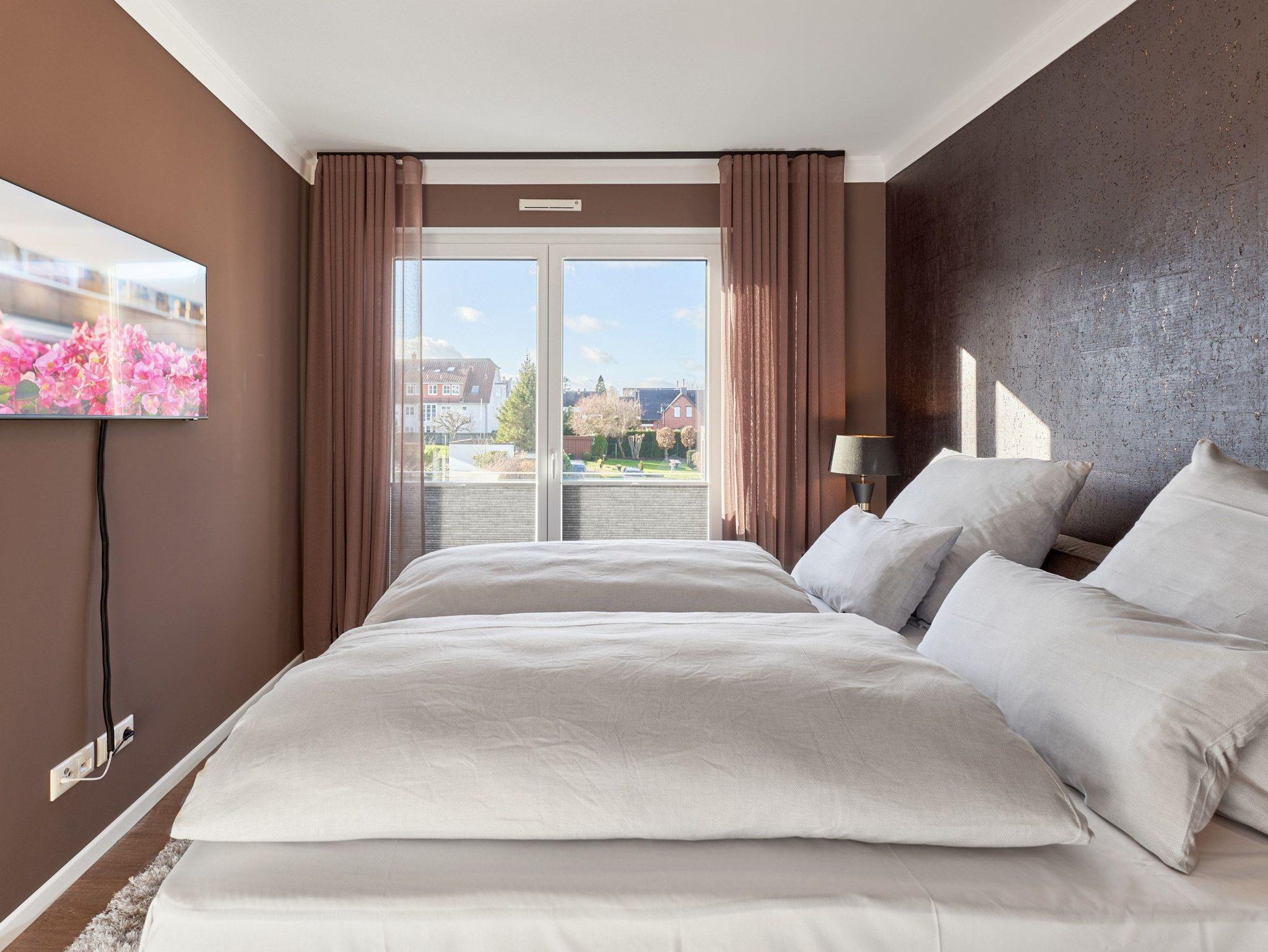 Die 2-Zimmerwohnung Waterside Suite liegt im 2. OG und ist bequem mit dem Fahrstuhl zu erreichen. Den feinsandigen, weißen Strand und Ihren kostenlosen Strandkorb (saisonbedingt 15.05. 15.09) erreichen Sie in nur 50m. Sie liegt ganz nah an der pulsierenden Dünenmeile. Innerhalb von 1 Gehminute erreichen Sie alles, was Sie für Ihren entspannten Urlaub benötigen: Bäcker, Restaurants, Cafés, Bars und gehobenen Einzelhandel.