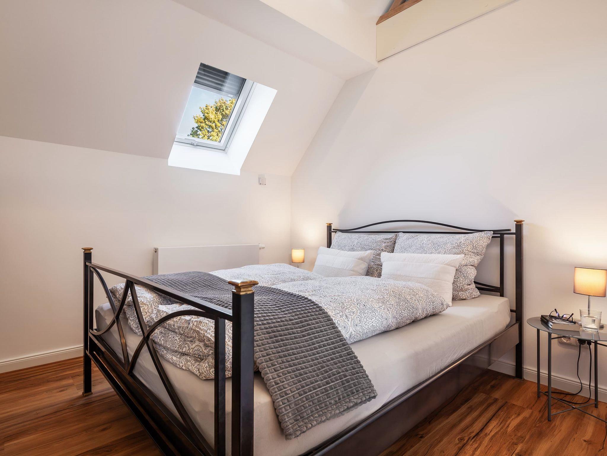 Unsere Wohnung ist darauf ausgerichtet, Ihnen erholsamen Schlaf zu ermöglichen. Das Schlafzimmer ist mit hochwertigen, schalldichten Fenstern ausgestattet und bietet ausreichend Verdunklungsmöglichkeiten. Die natürliche Bauweise unterstützt zudem ein angenehmes Raumklima, ähnlich einer Klimaanlage. Ein zusätzliches Fenster Element zum Wohnbereich verleiht dem Schlafzimmer einen besonderen Charme und lässt sich je nach Wunsch öffnen.