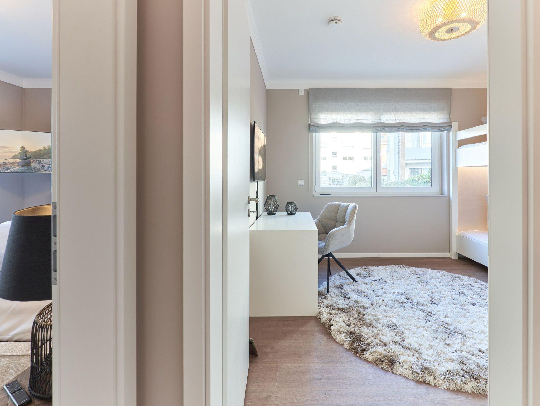 Das erste Schlafzimmer ist mit einem bequemen Doppelbett (1,80m x2,00m), einem Smart-TV (43 Zoll) sowie mit einem Kleiderschrank ausgestattet. Im 2. Schlafzimmer stehen ein hochwertiges Etagenbett (1,20 m x 2,00m), angrenzend ein Einbauschrank sowie ein Schreibtisch, angefertigt in hochwertiger Tischlerarbeit, sowie ein TV (43 Zoll) für Sie bereit. Alle Räume lassen sich durch Außenrollläden verdunkeln. Das Duschbad hält für Sie einen Handtuchheizkörper und einerbodengleichen Dusche bereit. Kosmetikspiegel und Haartrockner sind hier selbstverständlich vorhanden.