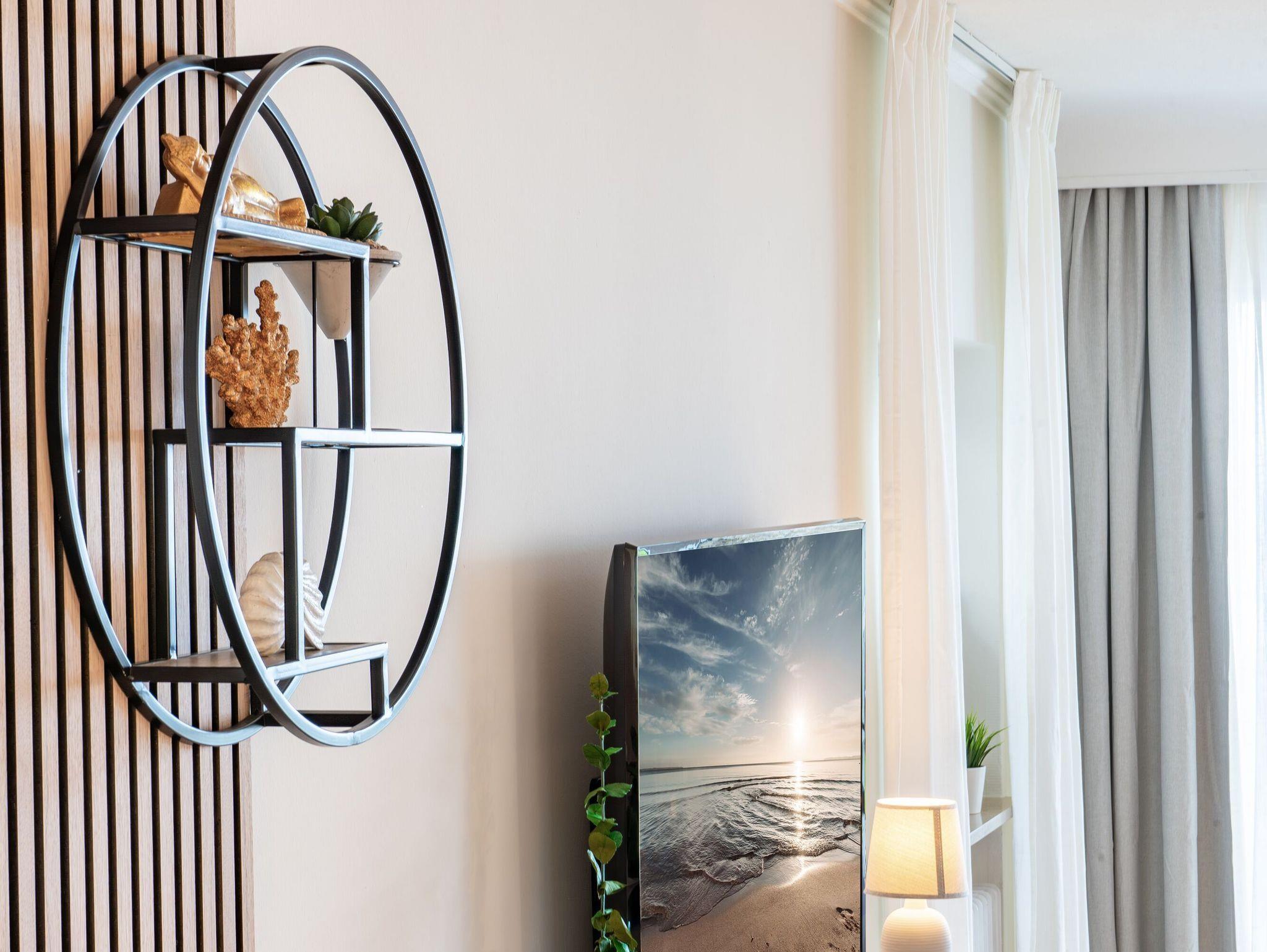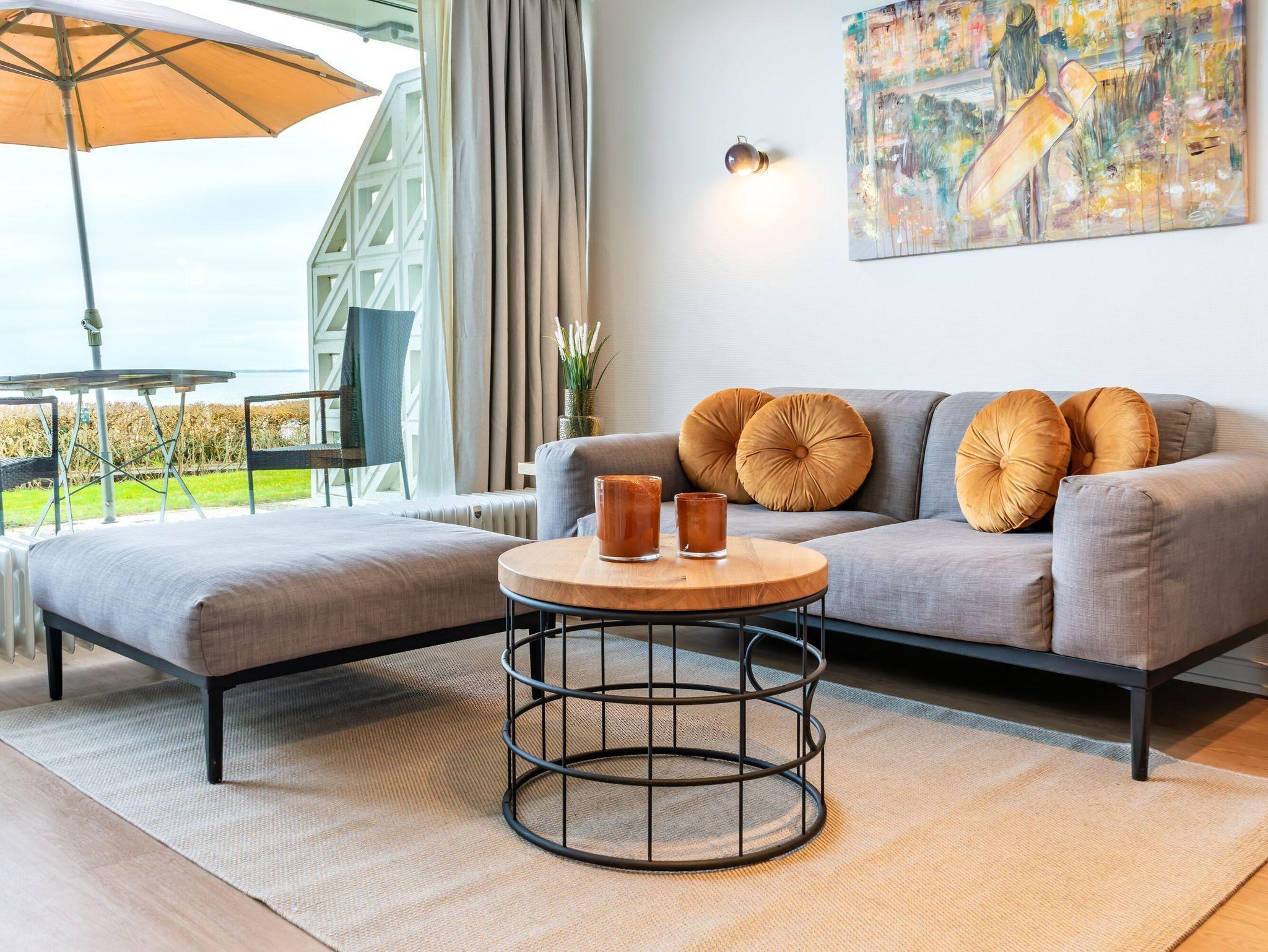 Diese 1-Zimmerwohnung bietet Platz für bis zu 2 Personen. Verschiedene Design-Klassiker sorgen für eine stylische und gleichzeitig gemütliche Atmosphäre. Es erwarten Sie ein bequemes Schlaraffia Boxspringbett (1,80x2,00m) und eine elegante Designer-Wohnzimmercouch von Rolf Benz, von welcher aus Sie den traumhaften Blick auf die Ostsee genießen können. Ein modernes Duschbad mit Kosmetikspiegel, eine Küchenzeile mit einem Geschirrspüler, einer Senseo-Kaffeemaschine sowie einer Filterkaffeemaschine und einem Wasserkocher, WLAN und ein Flachbildfernseher runden das Angebot ab. Die große Terrasse mit Blick auf die Ostsee lädt zum Outdoor-Living ein. Durch die Terrassenbauweise des Hauses können Sie hier viele Sonnenstunden genießen. Für Ihren PKW steht Ihnen hinter dem Haus ein Stellplatz zur Verfügung. Falls Sie eigene Fahrräder mitbringen möchten, können Sie diese in einer, nur zu dieser Wohnung gehörenden, abschließbaren Fahrradbox unterbringen.