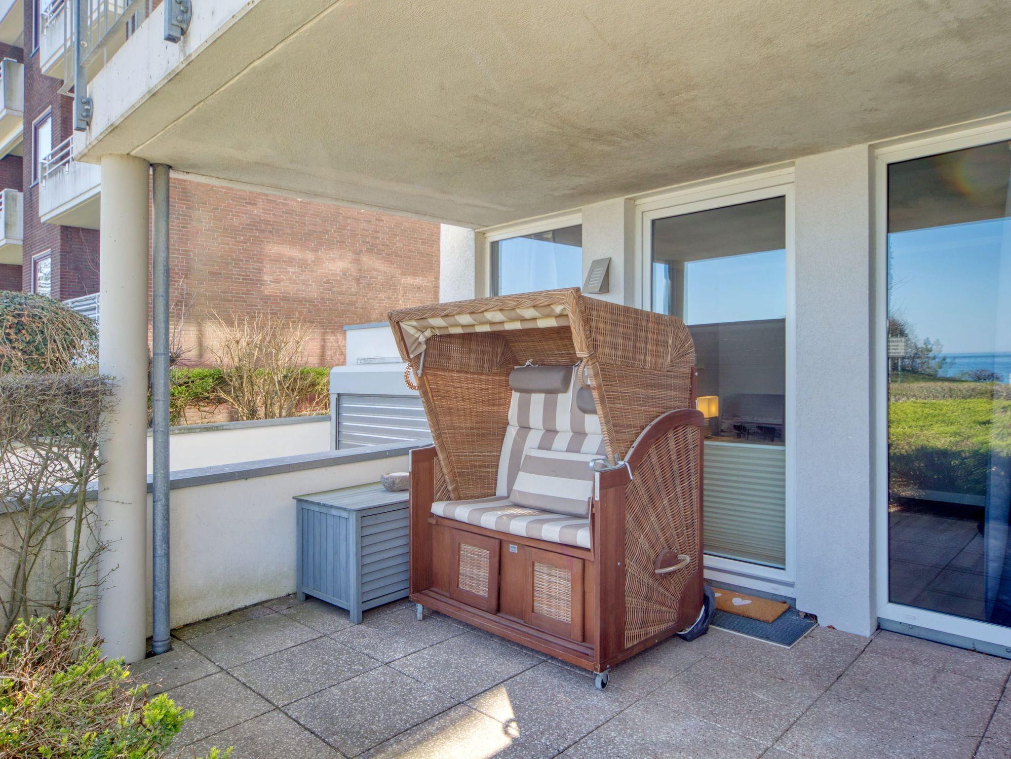 3-Zimmer-Ferienwohnung, ca. 66 m², mit Duschbad, zwei Terrassen, Fahrstuhl und Tiefgaragenstellplatz, für bis zu 3 Personen.