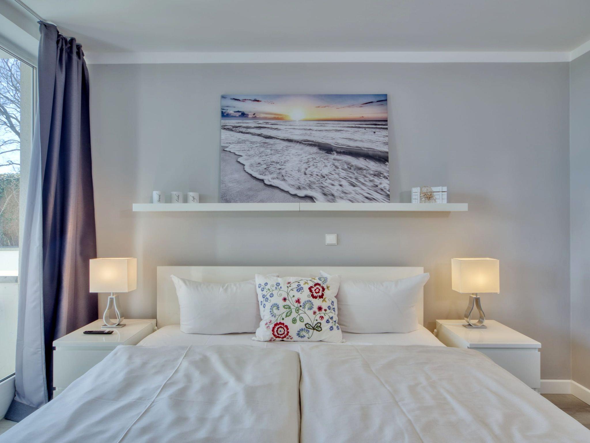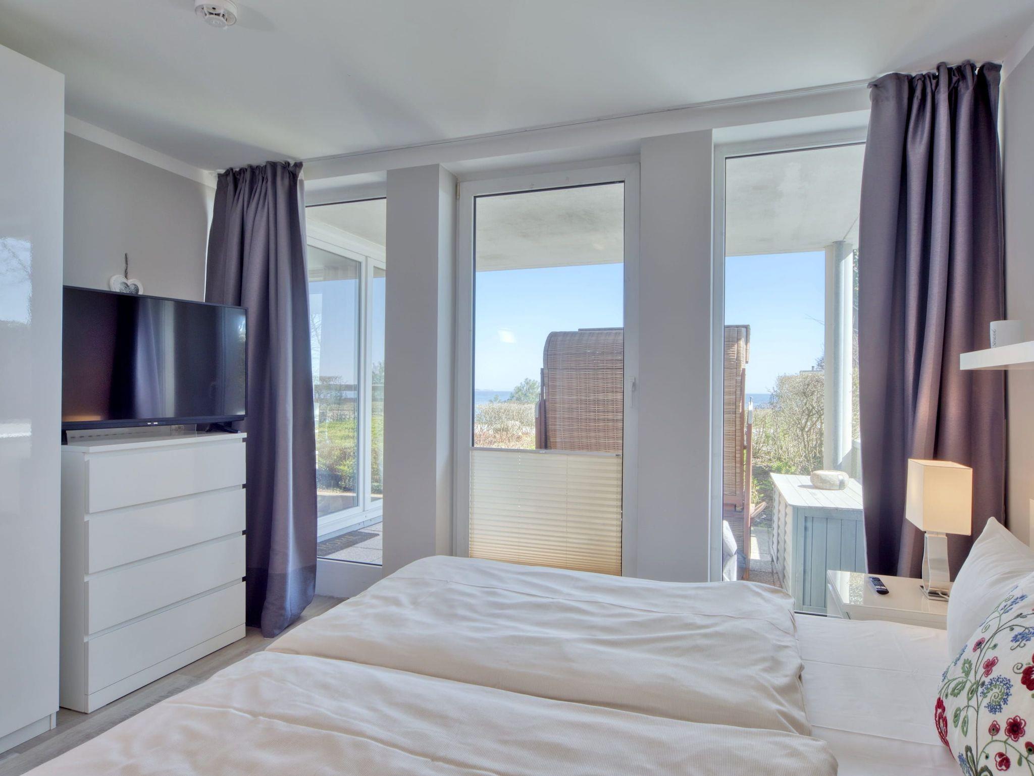 Diese gemütliche 3-Zimmer-Ferienwohnung bietet Ihnen neben dem traumhaften Blick auf die Lübecker Bucht und die Ostsee alles, was Ihr Urlaubsherz begehrt. Der Wohn-Essbereich ist geschmackvoll eingerichtet und verfügt über SAT/Kabel-TV und einen kostenlosen WLAN-Anschluss. Aus dem Wohnzimmer gelangen Sie auf die erste Terrasse Richtung Osten und können den Blick über die Ostsee schweifen lassen. Das gemütliche Schlafzimmer ist mit einem geräumigen Kleiderschrank, einem Boxspringbett
