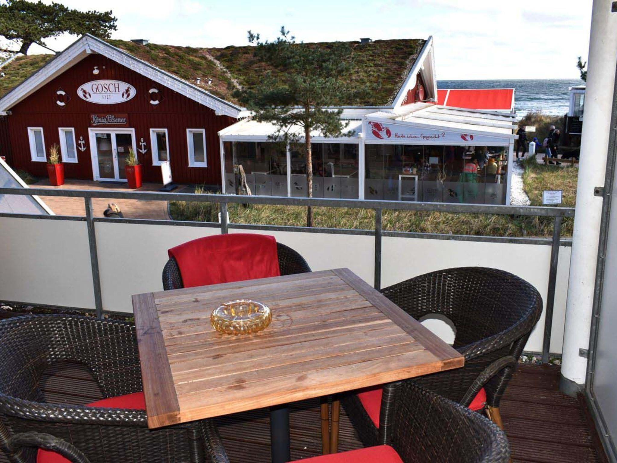 myOSTSEE Hinweis: Meerblick zwischen den Häusern und Sie sitzen bei Gosch Sylt und Grande Beach auf dem Balkon in zweiter Reihe und bekommen das Geschehen mit