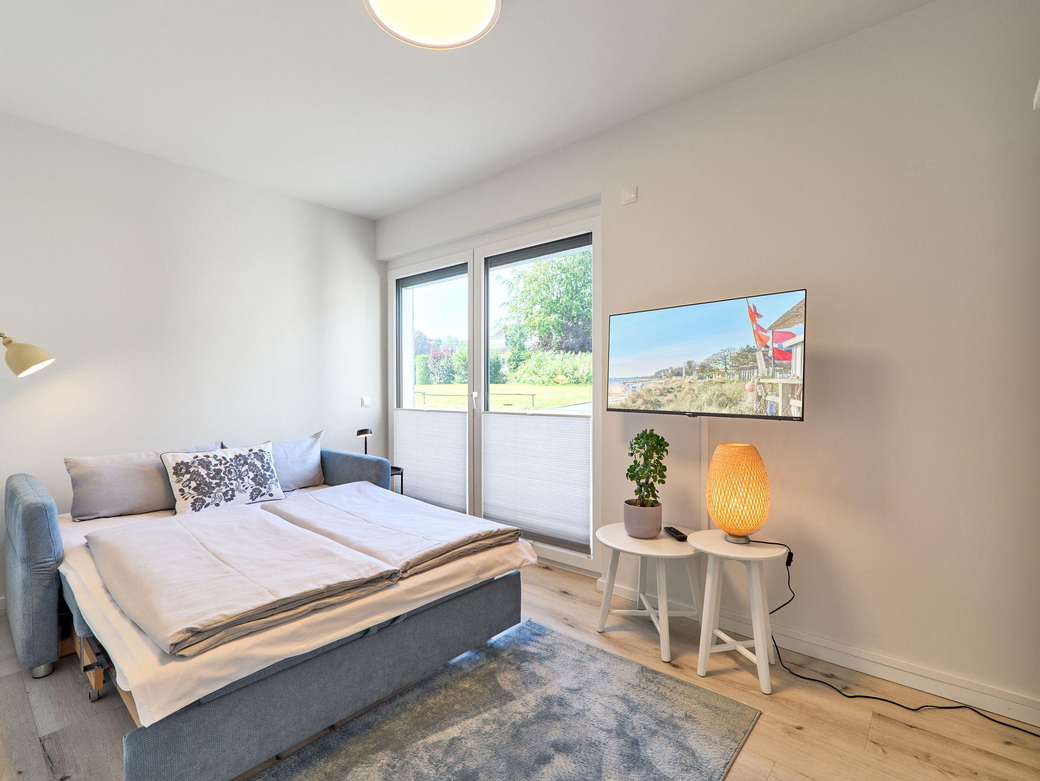 Zwei weitere Zimmer, je mit einem Schlafsofa 140x200, je einem Kleiderschrank sowie einem TV, Außenrollläden.
