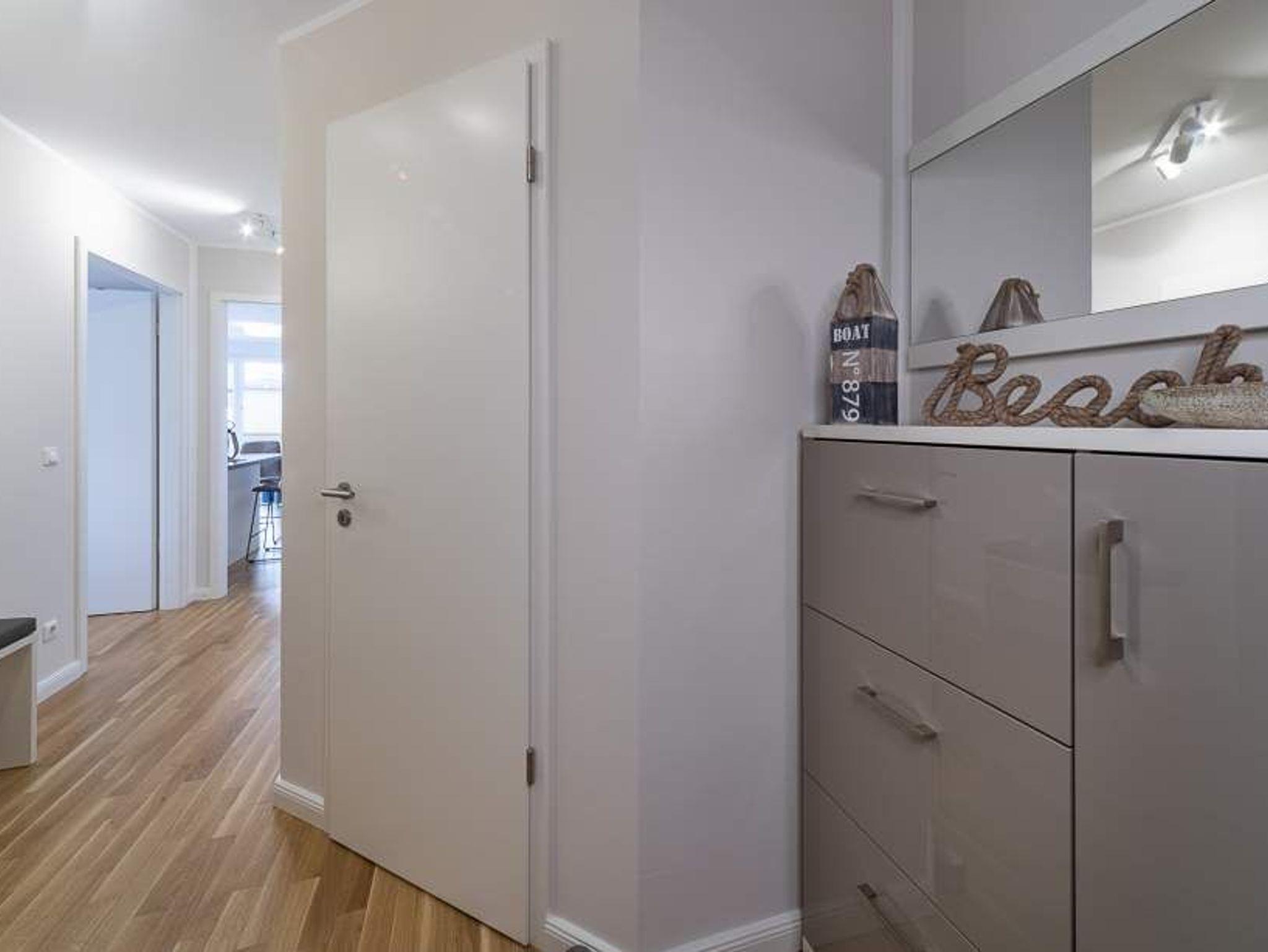 Im Schlafzimmer sorgt ein bequemes Doppelbett (1,80 x 2,00m) mit Qualitätsmatratzen für einen erholsamen Schlaf. Die Urlaubsgarderobe findet Platz im geräumigen Kleiderschrank. Für den zusätzlichen Komfort steht Ihnen auch hier ein stylischer Flachbildfernseher zur Verfügung. Alle Räume sind mit warmem Echtholzparkett und Fußbodenheizung ausgestattet. Bodentiefe Fenster garantieren viel Tageslicht und eine gute Aussicht. Das Badezimmer verfügt über eine bodentiefe Dusche und einen großen Spiegel. Neben der Fußbodenheizung ist hier ein zusätzlicher Handtuchheizkörper angebracht. Weiteres Highlight ? eine zusätzliche Gäste-Toilette.